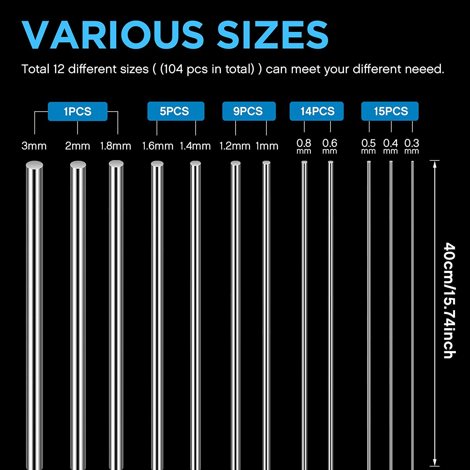 • 104 Pcs 40 Cm Stainless Steel Spring Wire Music Wire, 12 Different Straight Full