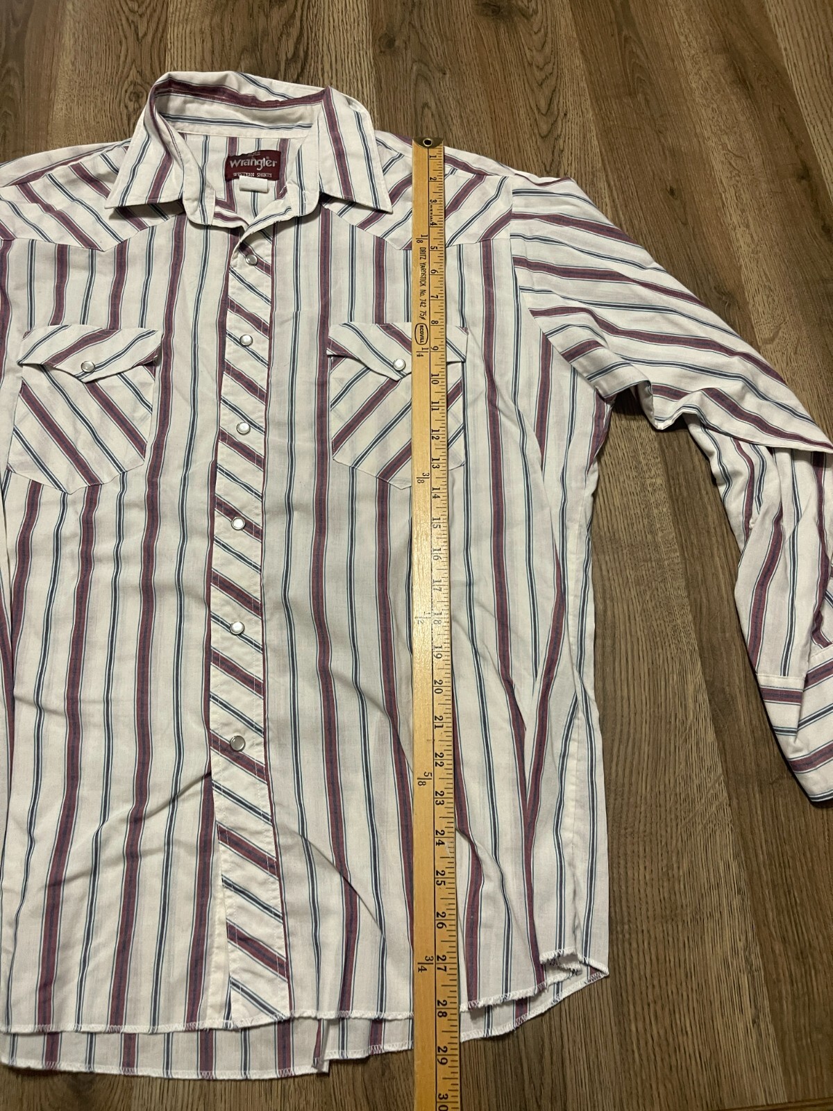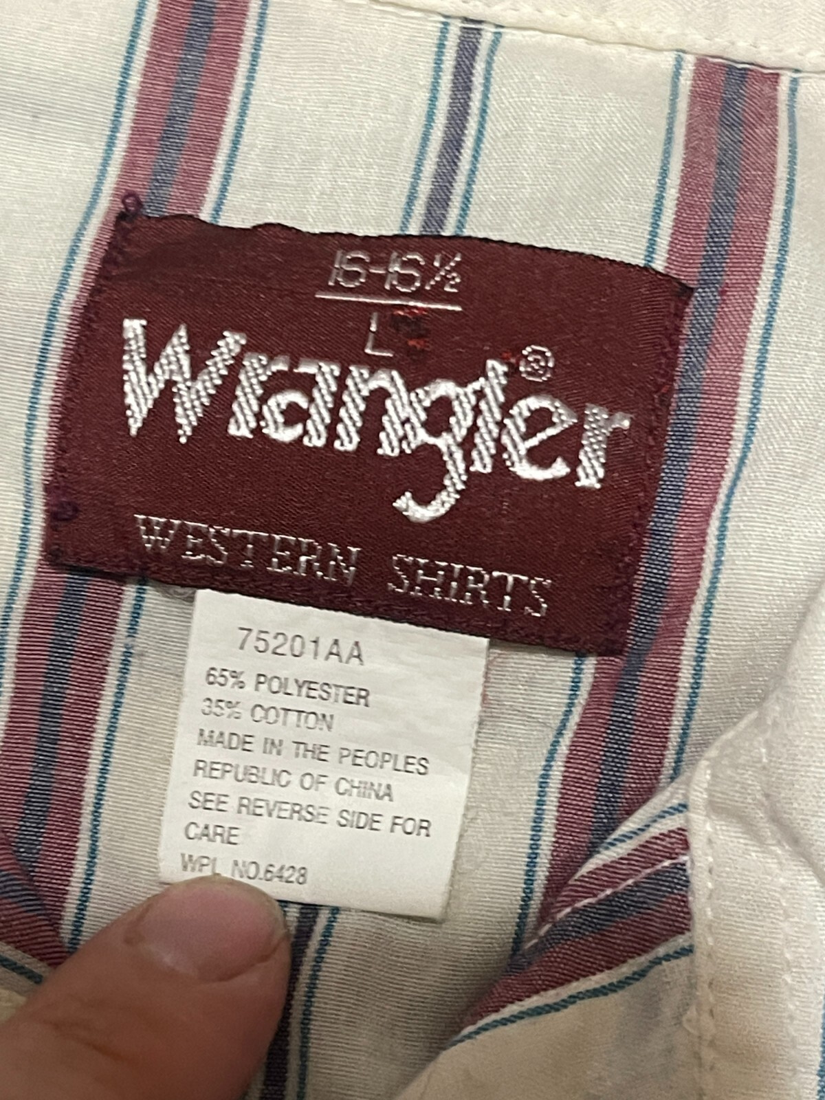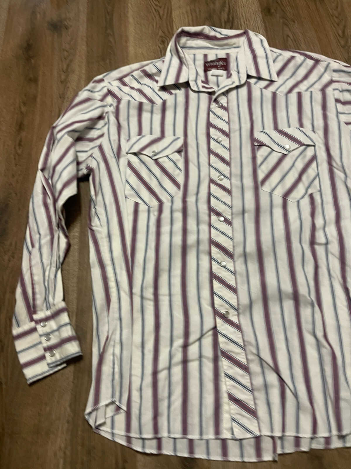 Wrangler Shirt, Men's Size Large, 16-16.5, Rede Blue White, Western, Pearl