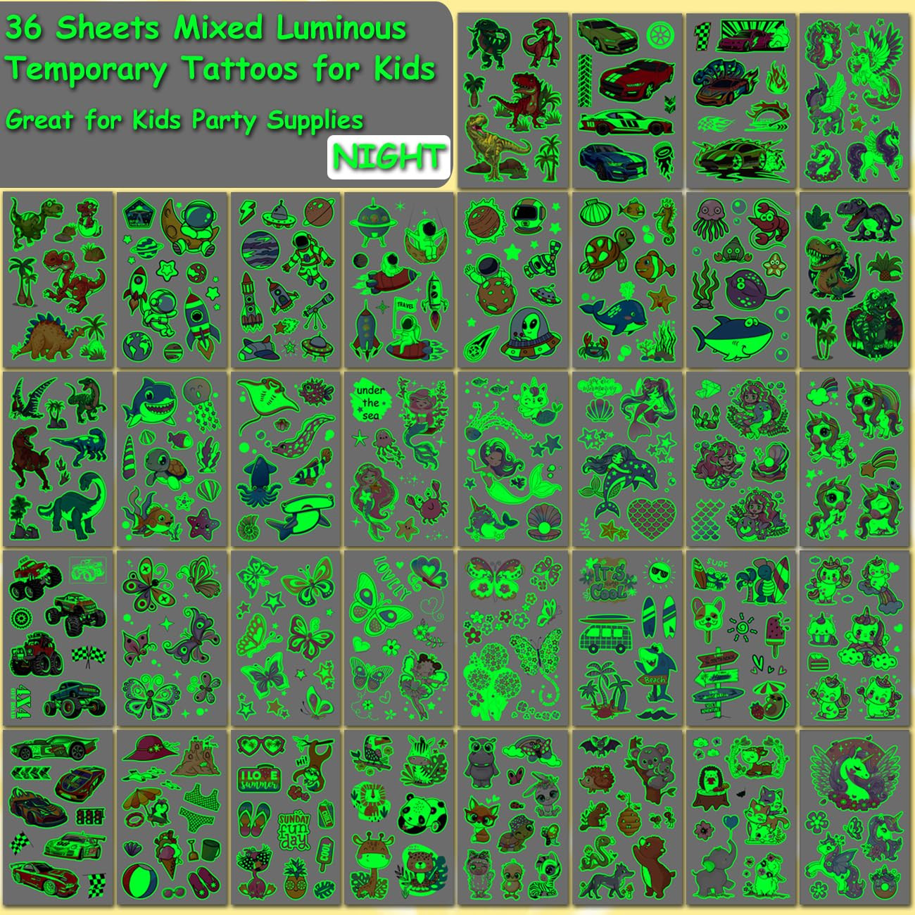 300 Styles Glow in the Dark Tattoos for Kids, 36 Sheets Mixed Styles Luminous Te