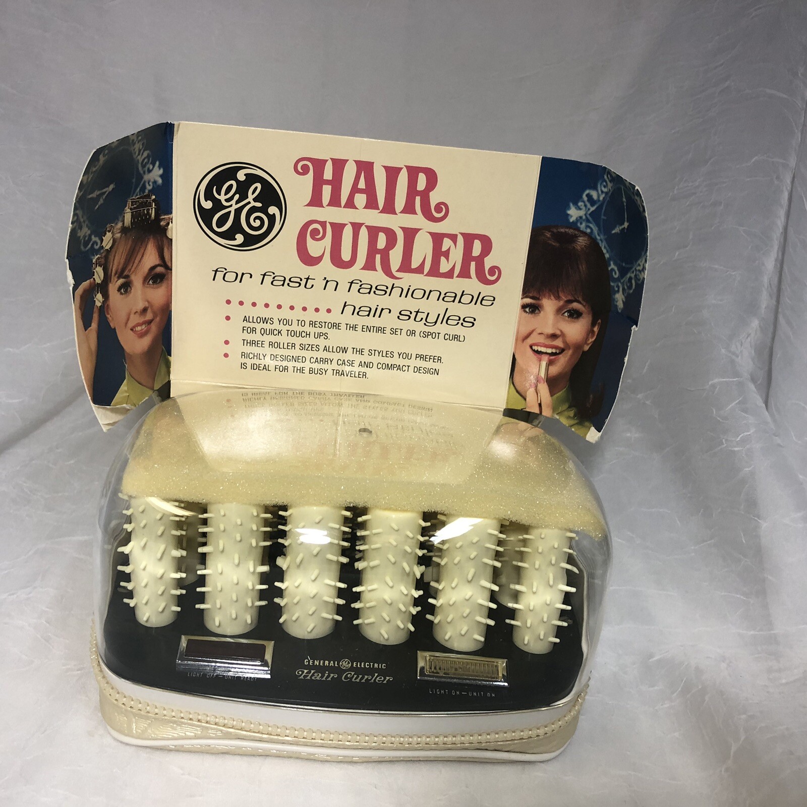 Vintage General Electric Hair Curler HCD-1 Hot Rollers with Case TESTED WORKS