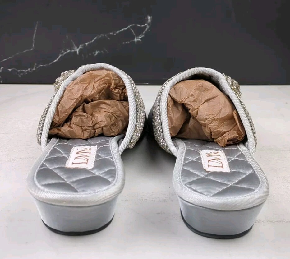как выглядит LMN Luxe Me Now Satin Slip On Wedge Sandal Sky Blue sz 7.5 фото