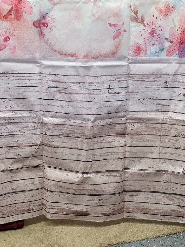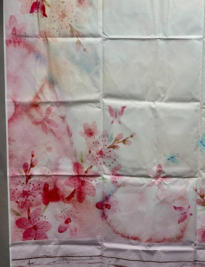 Photo Backdrop, Spring flowers/butterflies, Pink, Wood floor, Vinyl, 5' x7' NEW