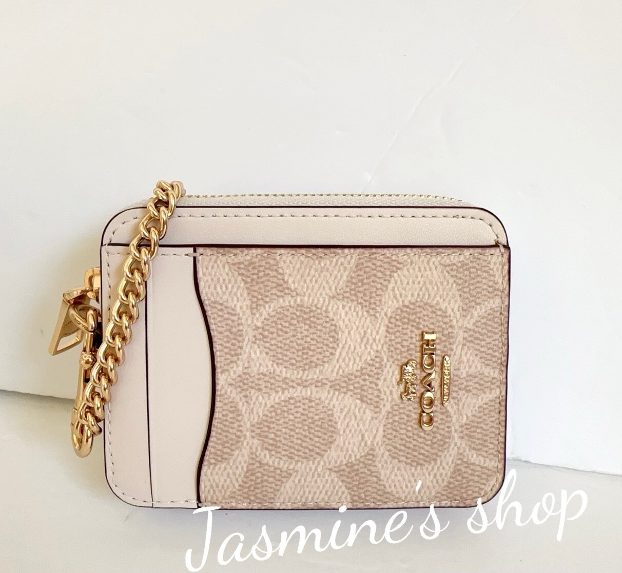 как выглядит NWT Coach Zip Card Case In Signature Canvas Sand Chalk CW883 фото