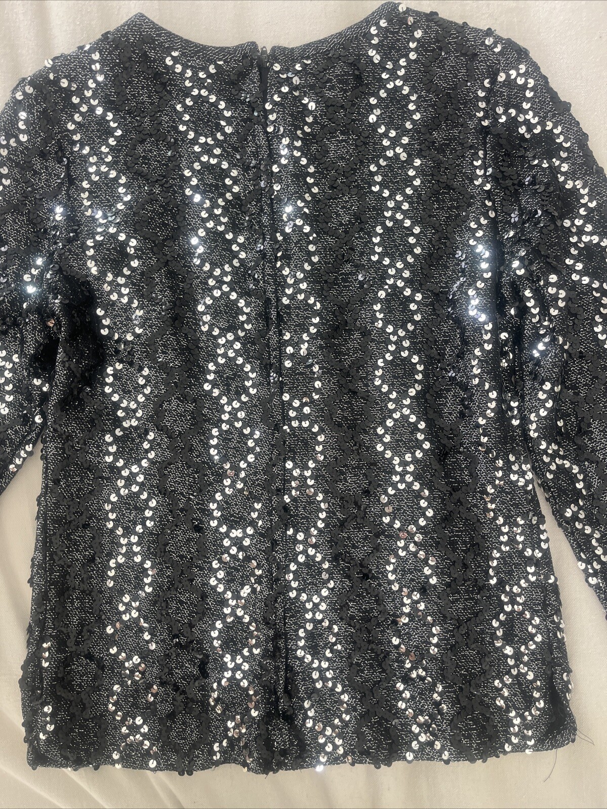 60s Vintage Sequin Blouse Metallic Party Cocktail Mob Wife NYE 70s 80s 10 / Med