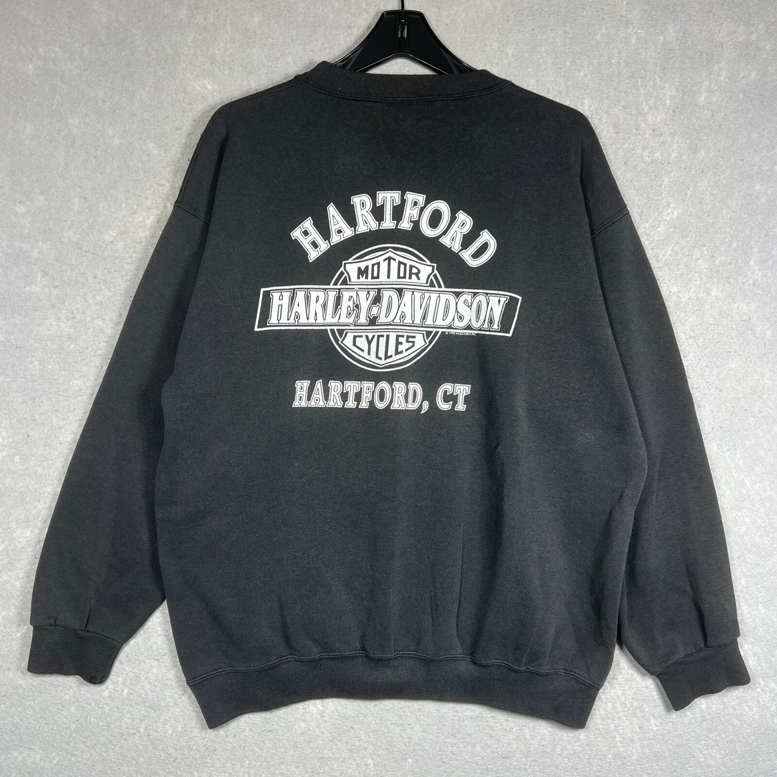 VTG Harley Davidson Crewneck Sweatshirt 1992 Holoubek Hartford, CT Mens XL Black