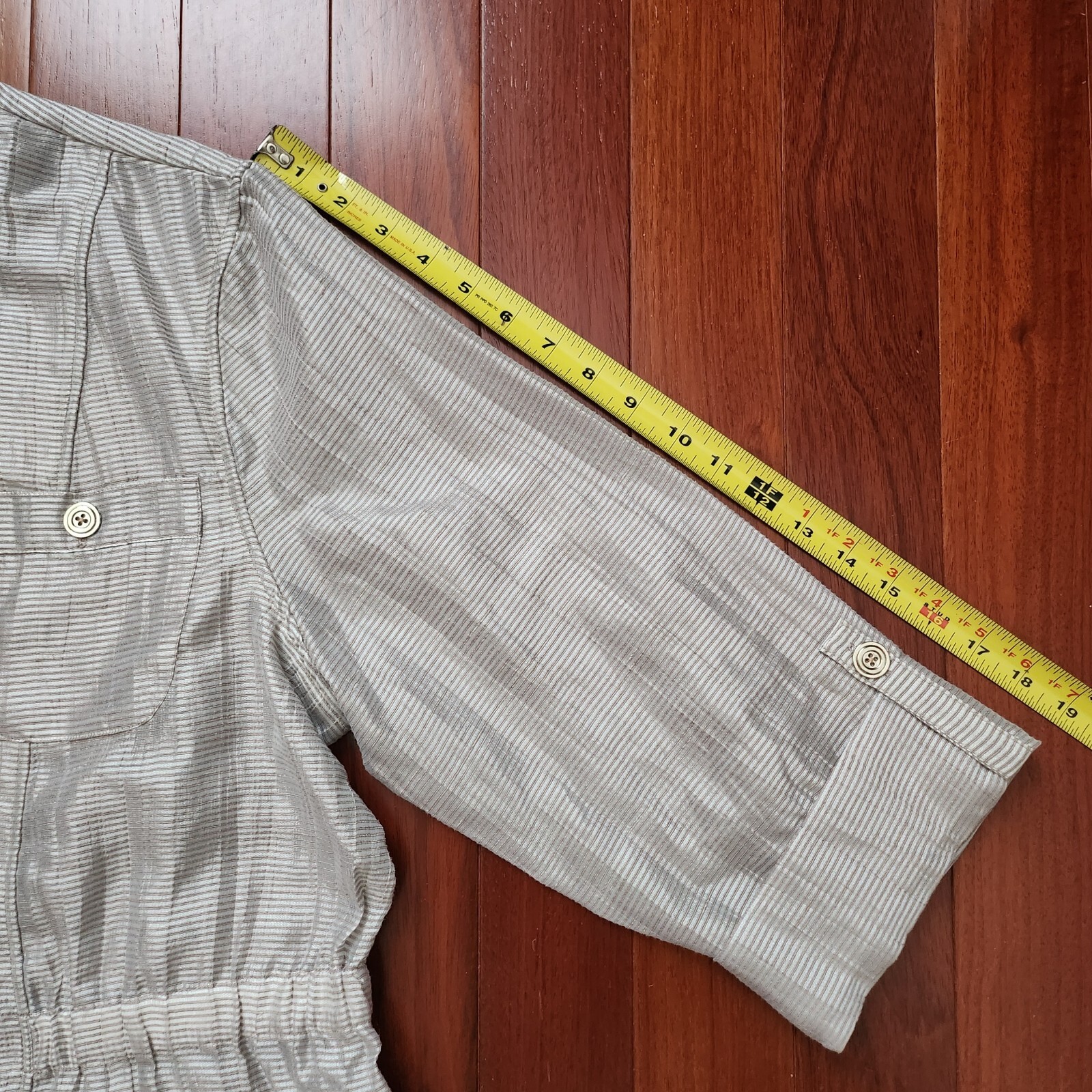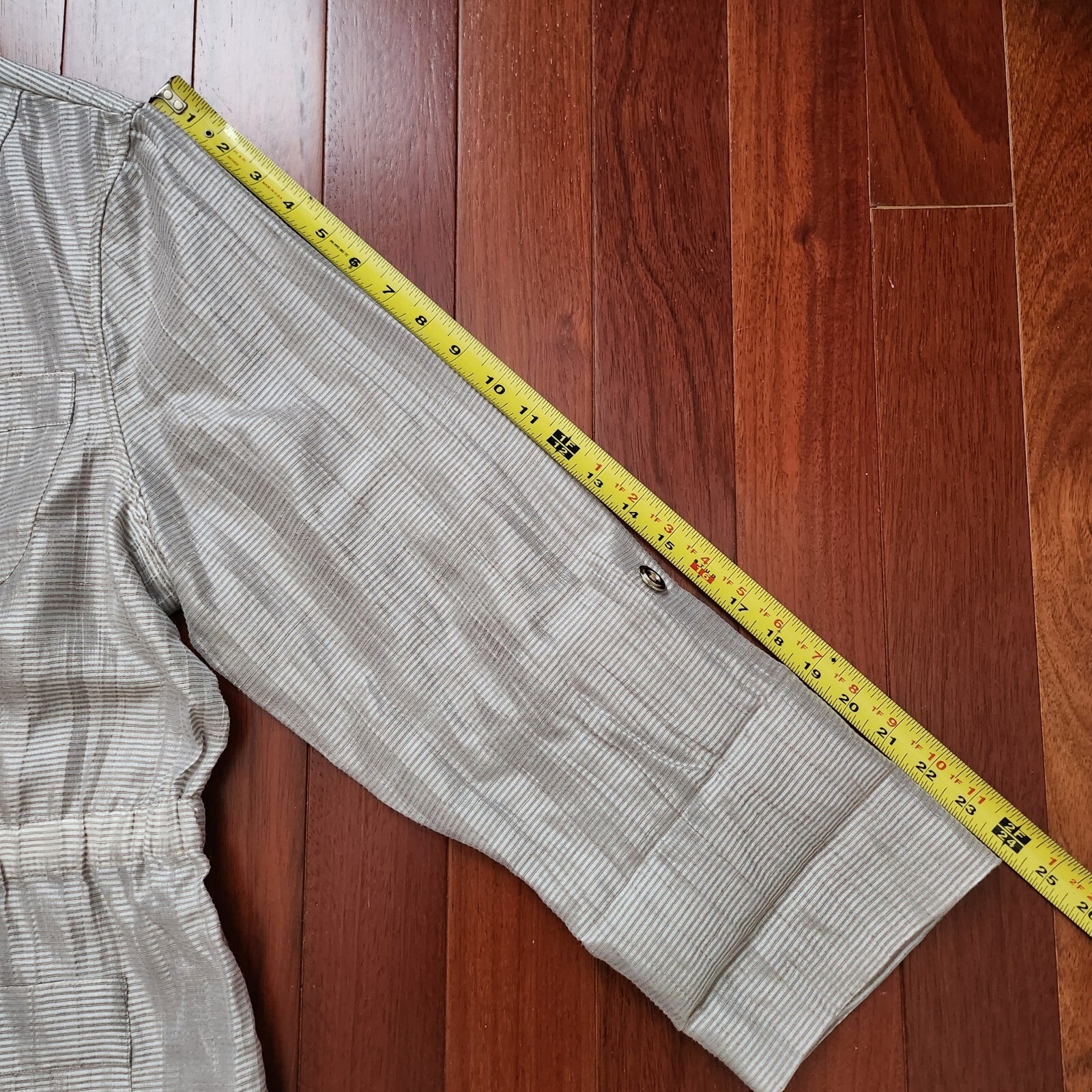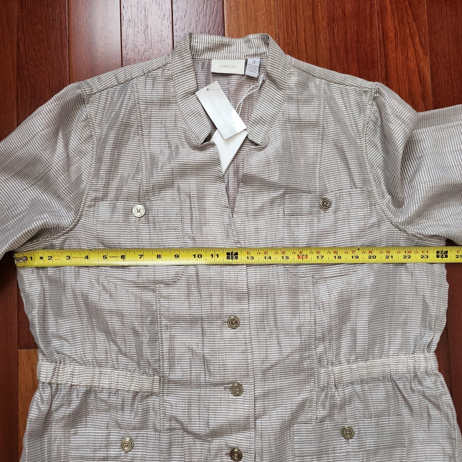 как выглядит NWT 109 CHICOS Trav Coll Nautical Nyssa Sand Silver Linen Blend Light Jacket 3 фото