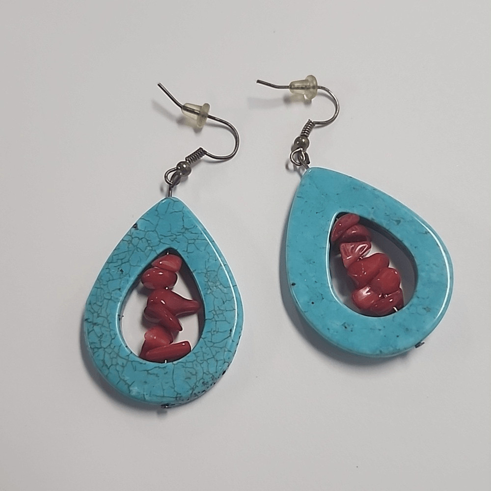 как выглядит Blue Howlite Earrings Teardrop Dangle Earrings Red Bead Center фото