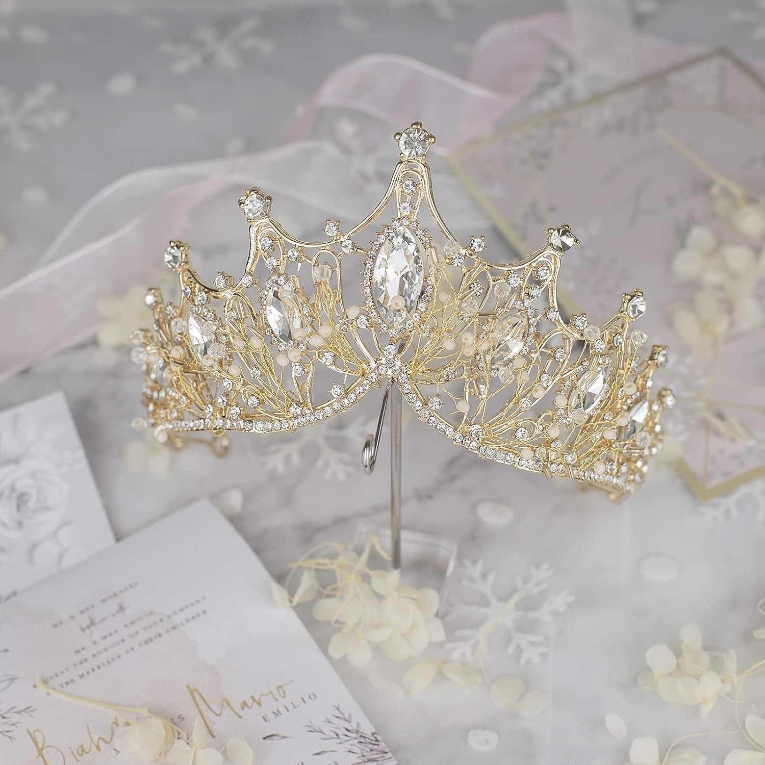 как выглядит Coronas Para Quincea eras Torta De Bodas Doradas Tiara Reina Del Baile Corona US фото