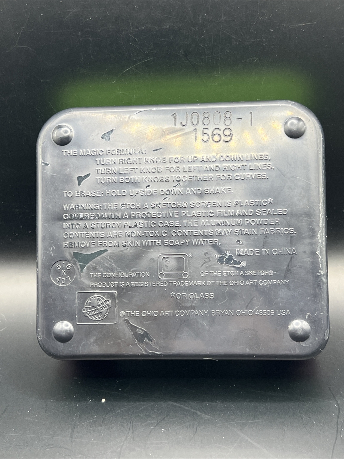 Vintage Pocket Etch A Sketch Ohio Art Green Case Fuchsia Knobs