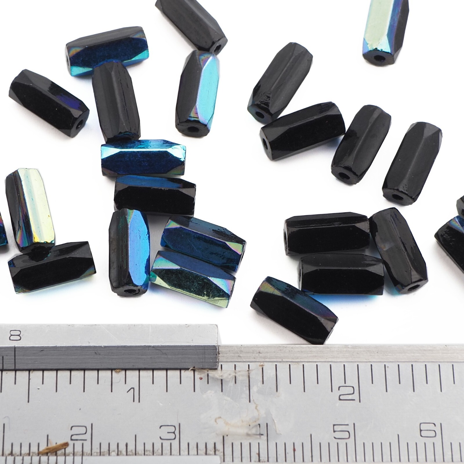 Lot 25pcs 10 mm Vintage Czech vitrail black pentagon bugle glass beads