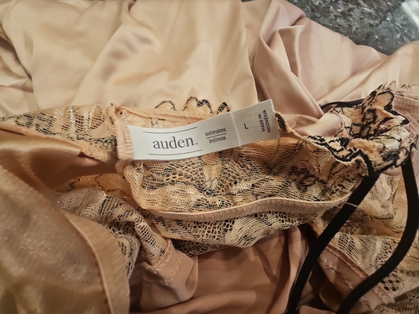 как выглядит Auden Blush Pink Slip Dress W Black Floral Lace Lingerie, Size Large фото