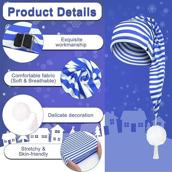 как выглядит Mens Night Cap Striped Pajama Hat Adjustable Sleeping Caps with Pom 2 Pcs фото