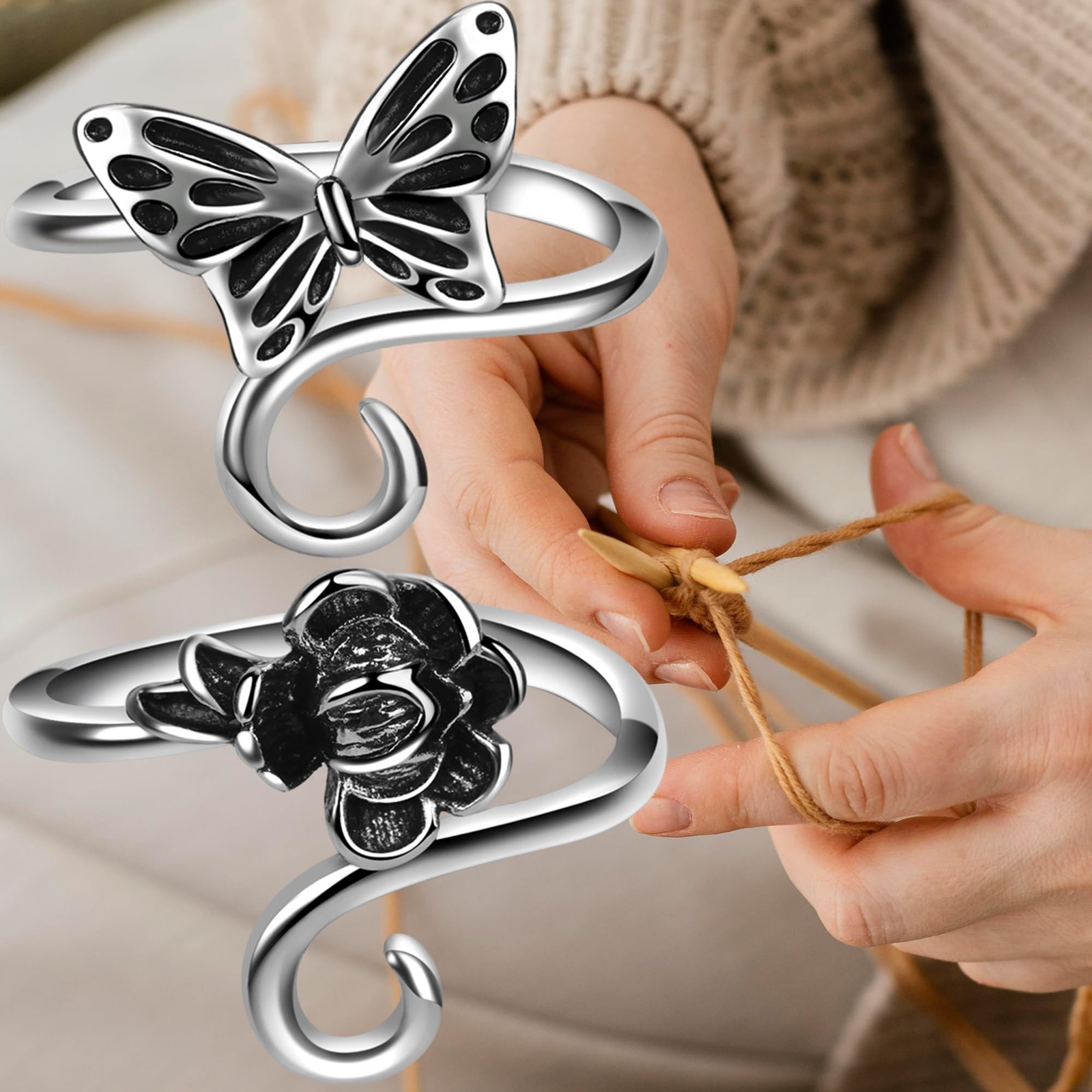 Цвет: Butterfly & Flower Crochet Rings Set