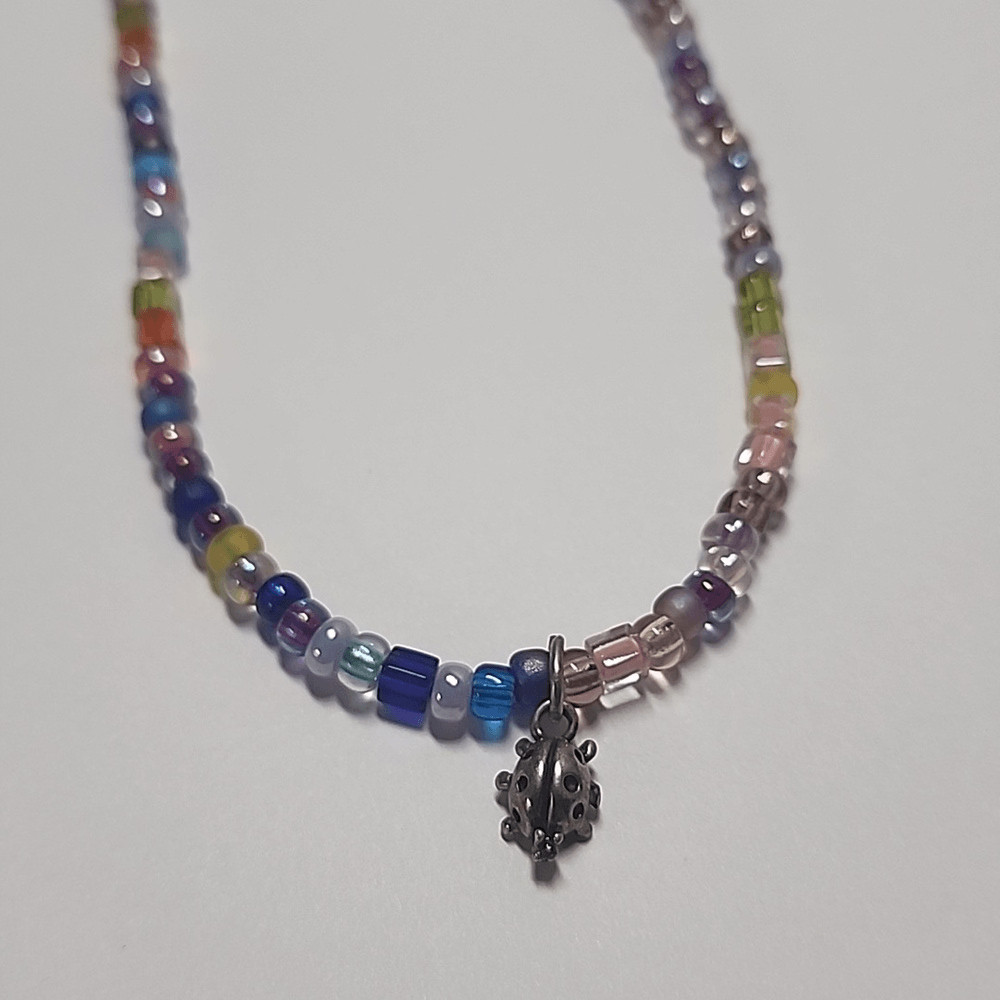 Beaded Necklace Multi Colored Beads Ladybug Charm Pendant 925 Clasp
