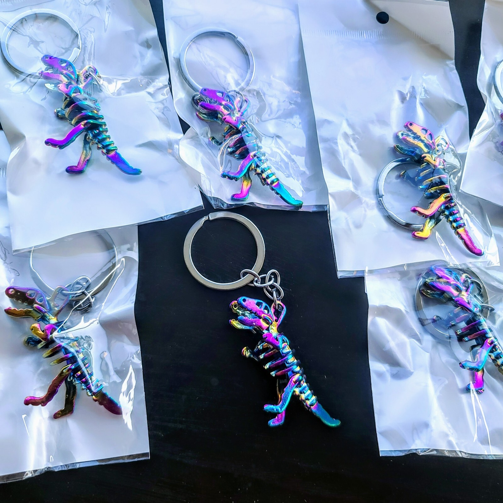 Metal T-Rex Keychain - Dinosaur Skeleton Metal Alloy With Ring