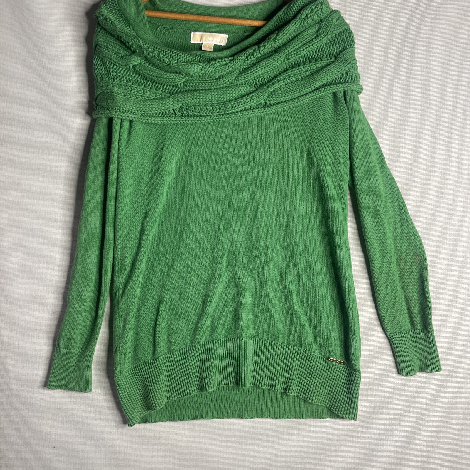 Michael Kors green turtleneck sweater off the shoulder Size Large Knit See Pics