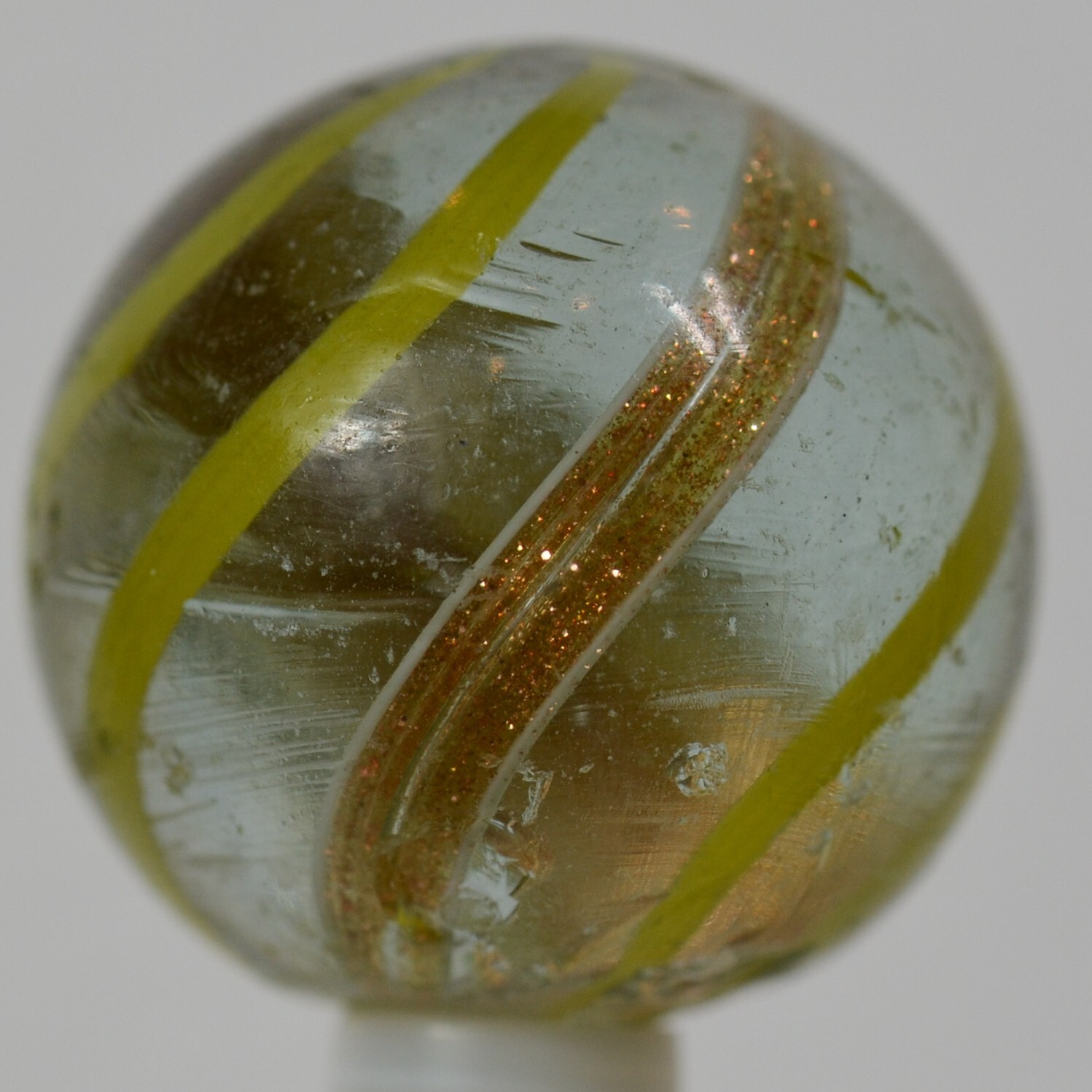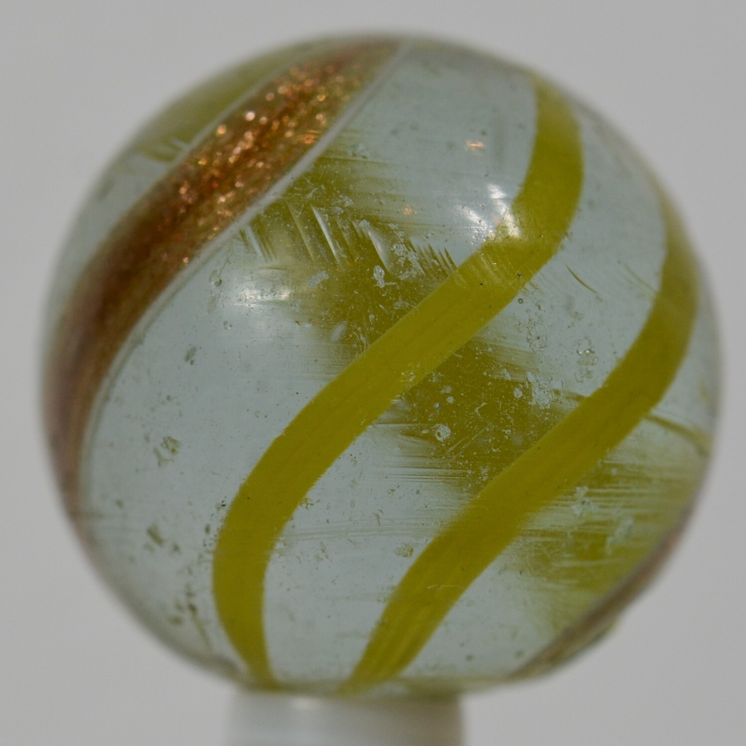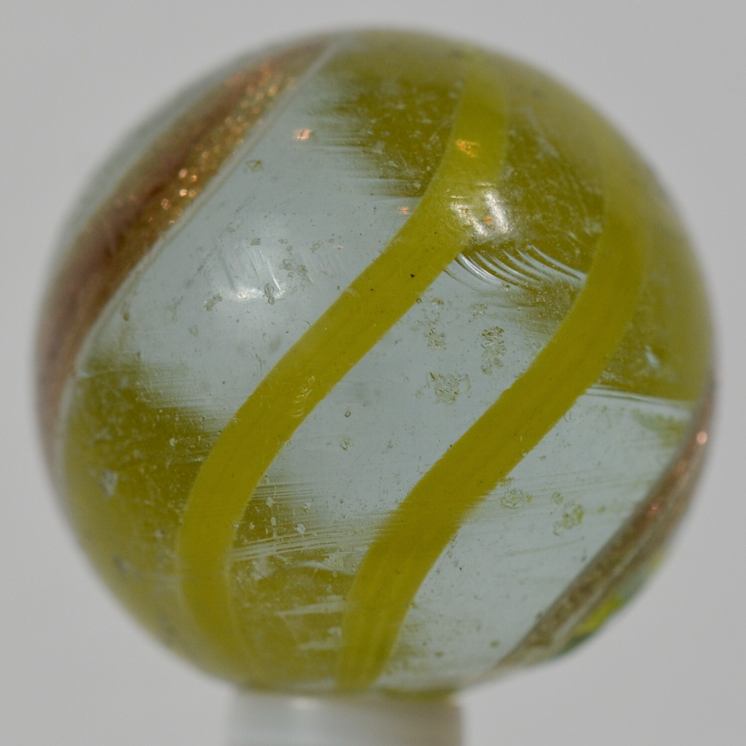 Handmade Yellow Banded Lutz Marble, Shooter 29/32 in, Near Mint, Germany, S1264