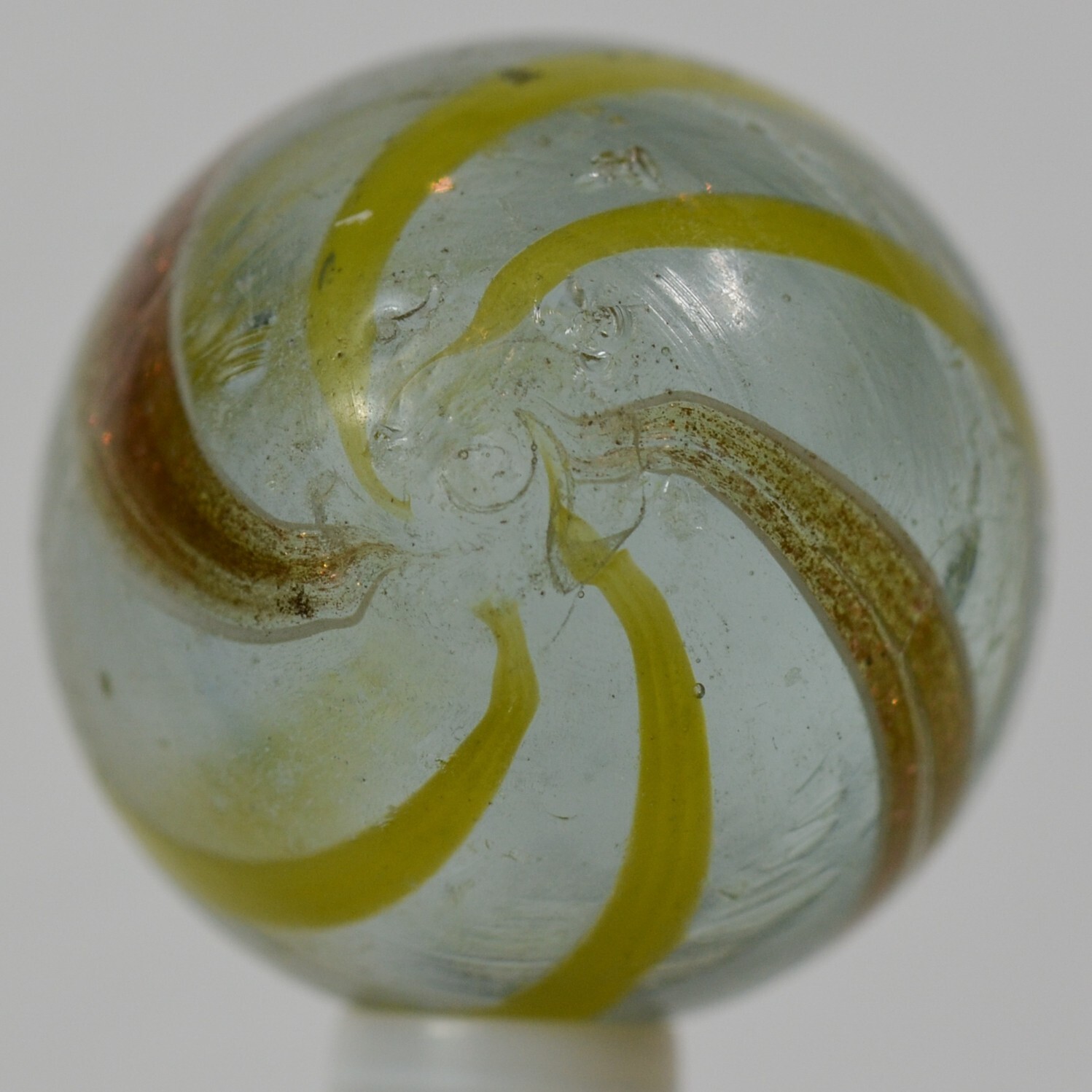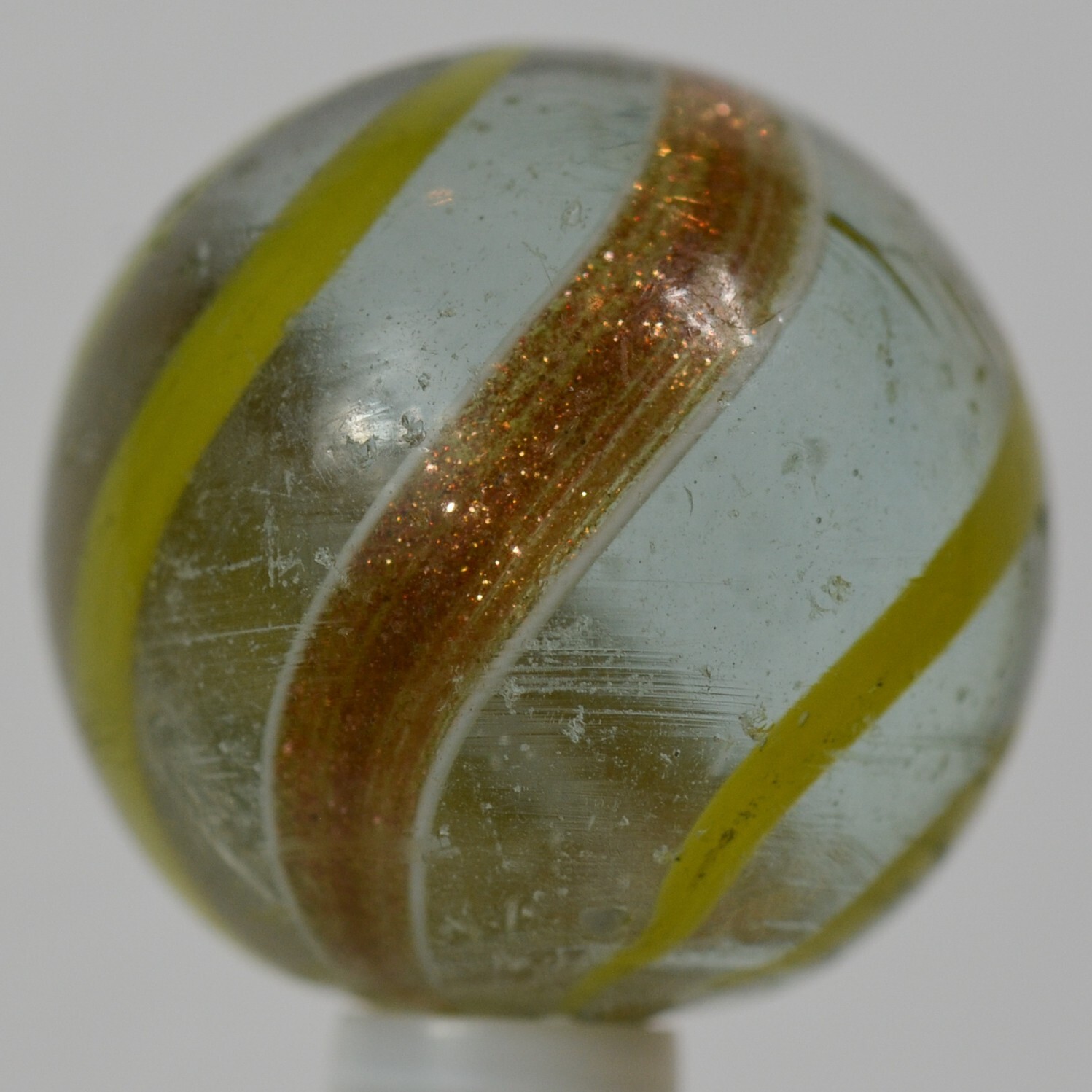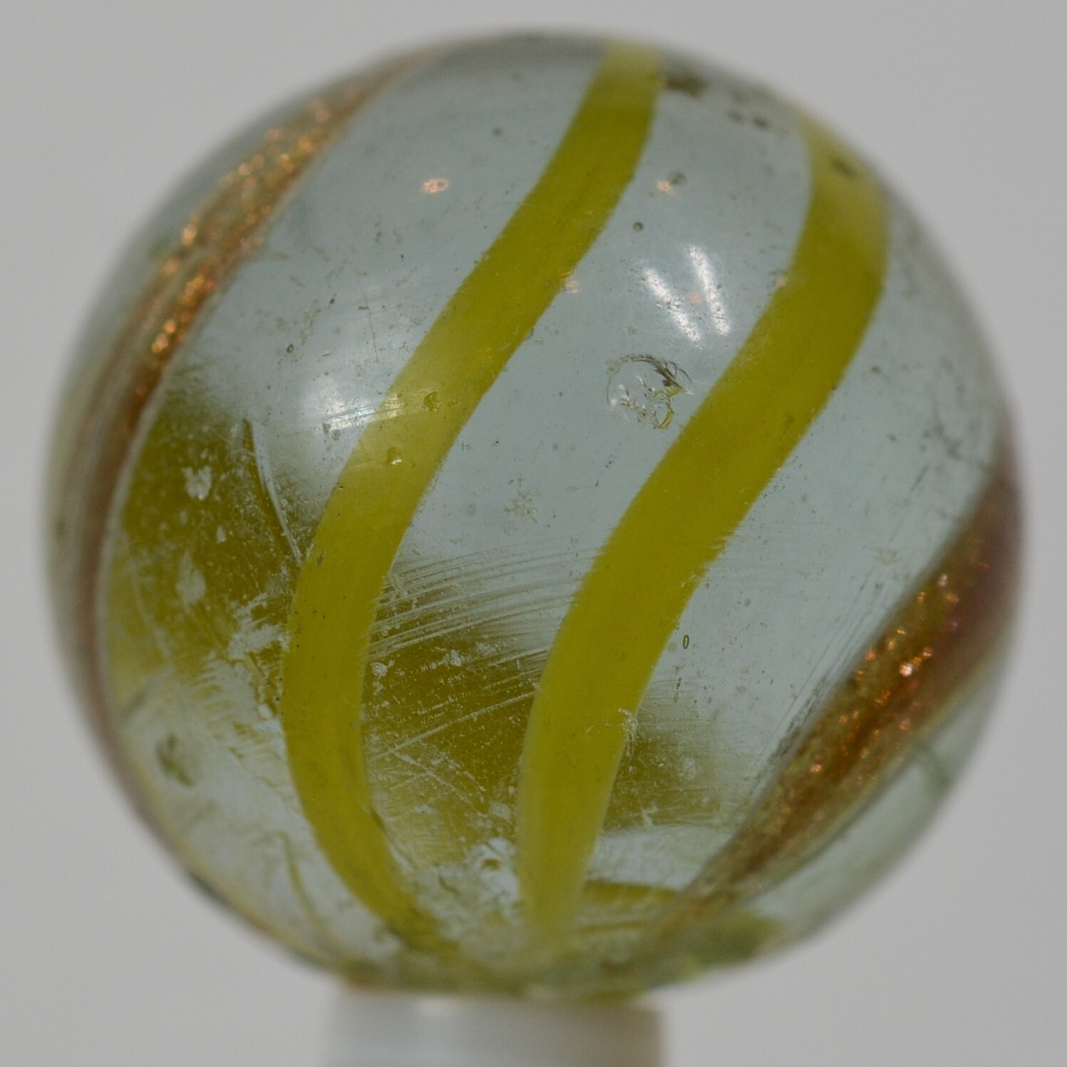 Handmade Yellow Banded Lutz Marble, Shooter 29/32 in, Near Mint, Germany, S1264