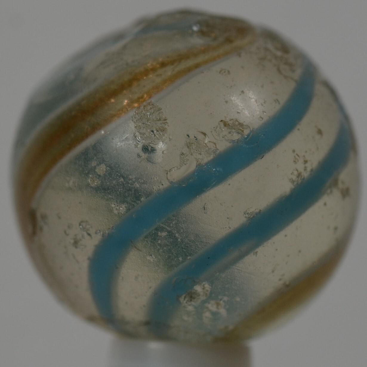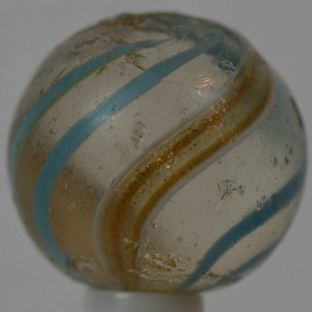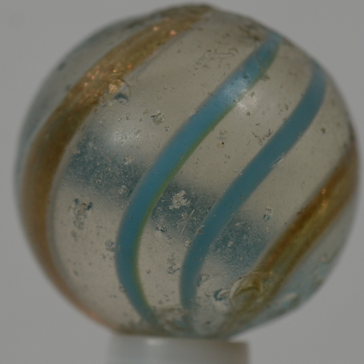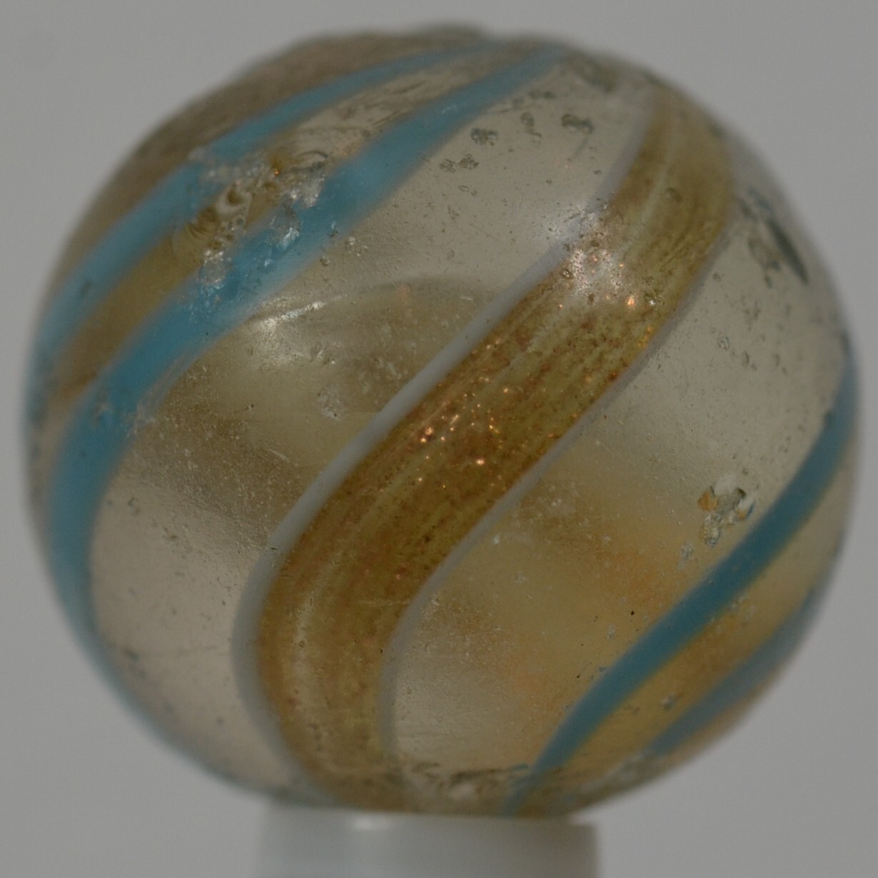 как выглядит Handmade Aqua Banded Lutz Marble, 25/32 in, Good , Chip, Germany 1860-1920 S1234 фото