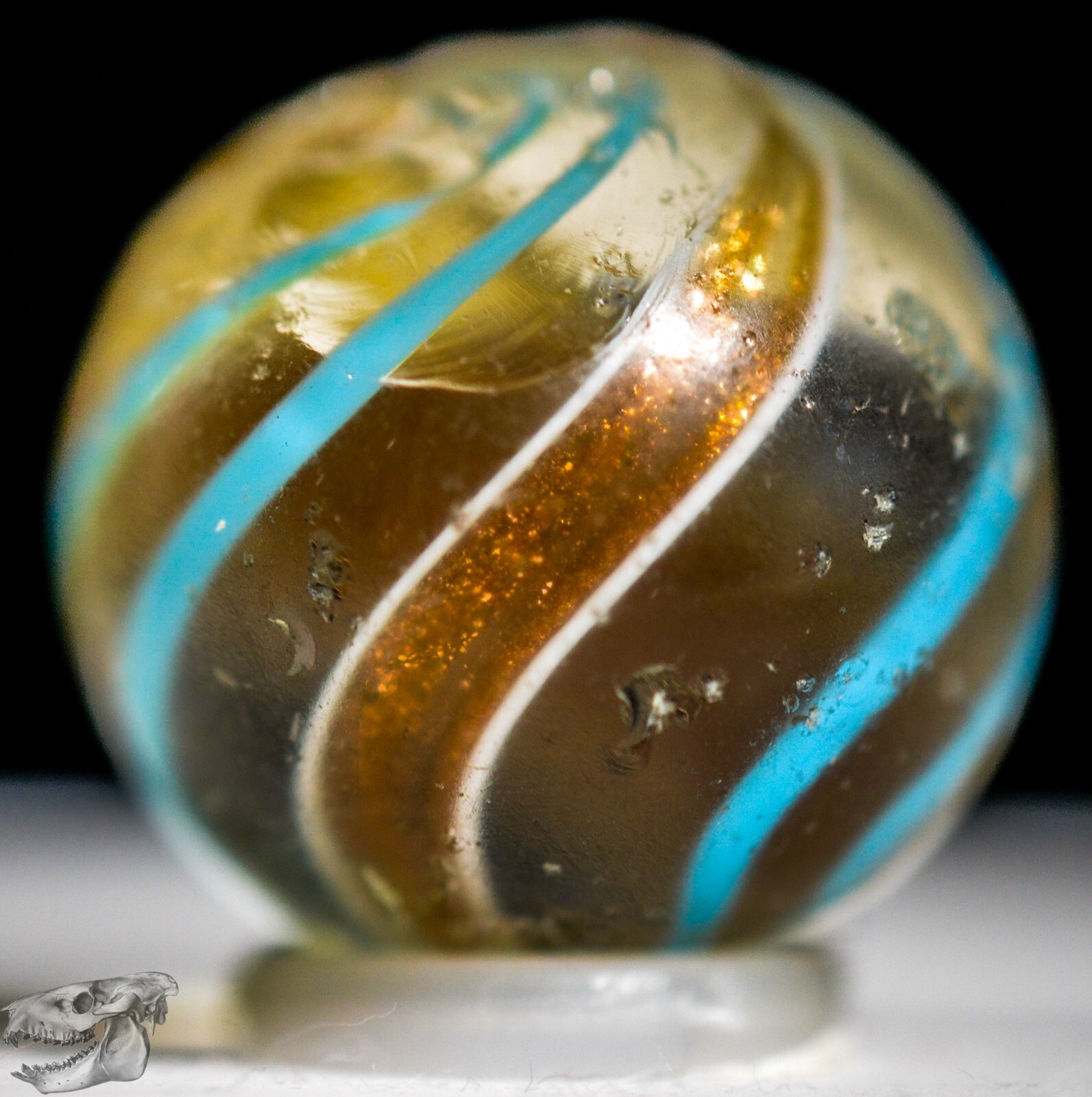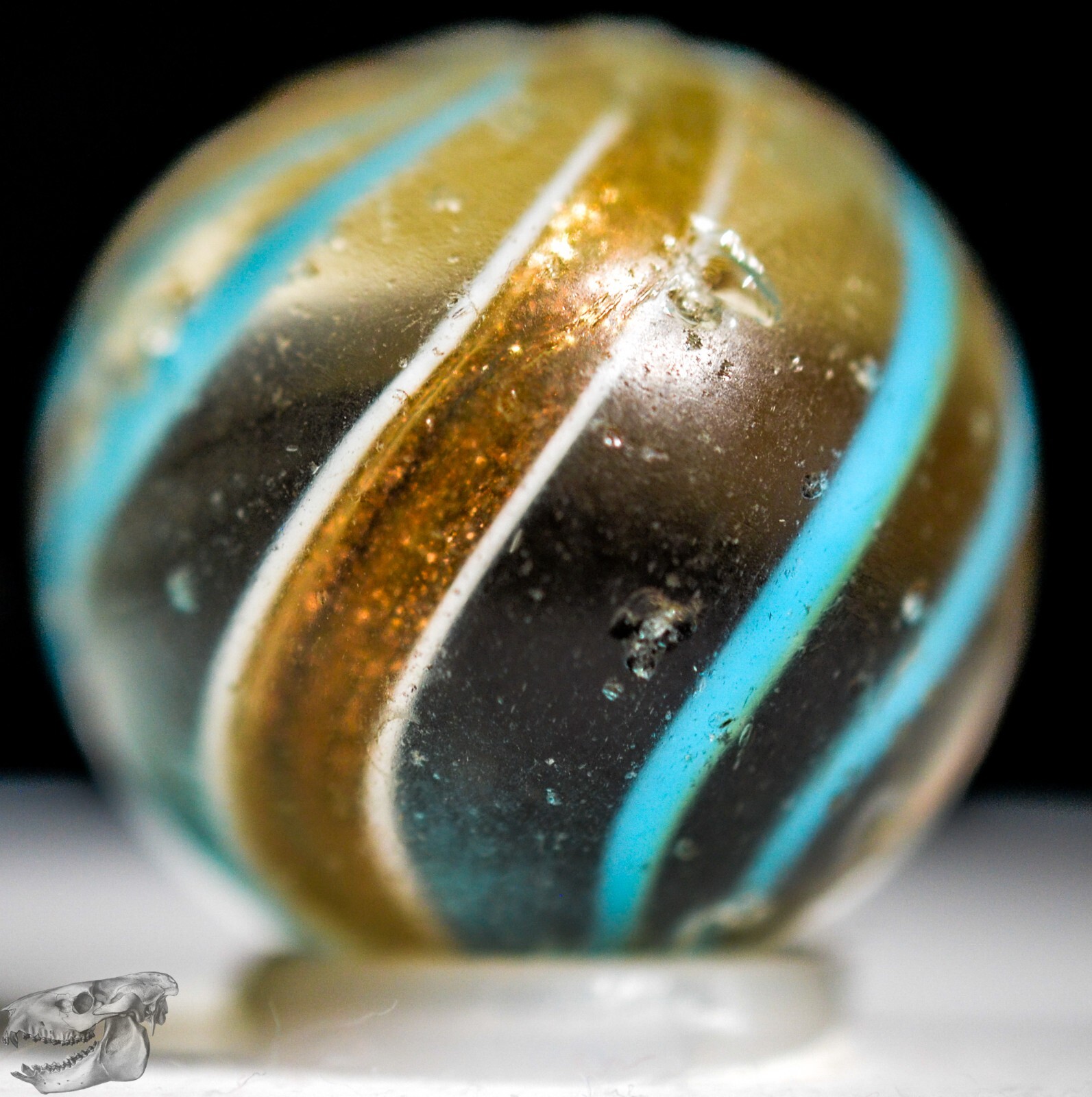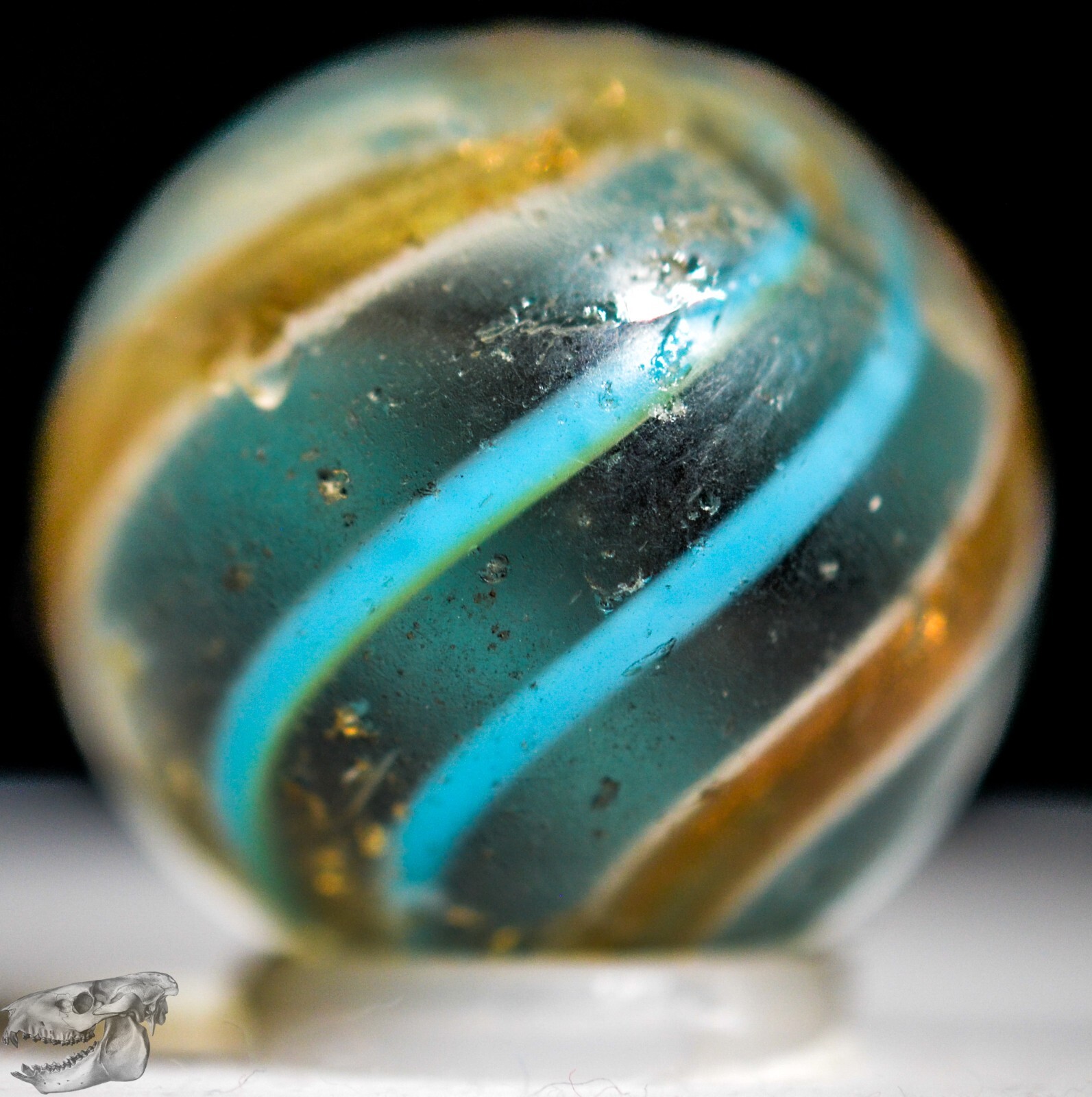 как выглядит Handmade Aqua Banded Lutz Marble, 25/32 in, Good , Chip, Germany 1860-1920 S1234 фото