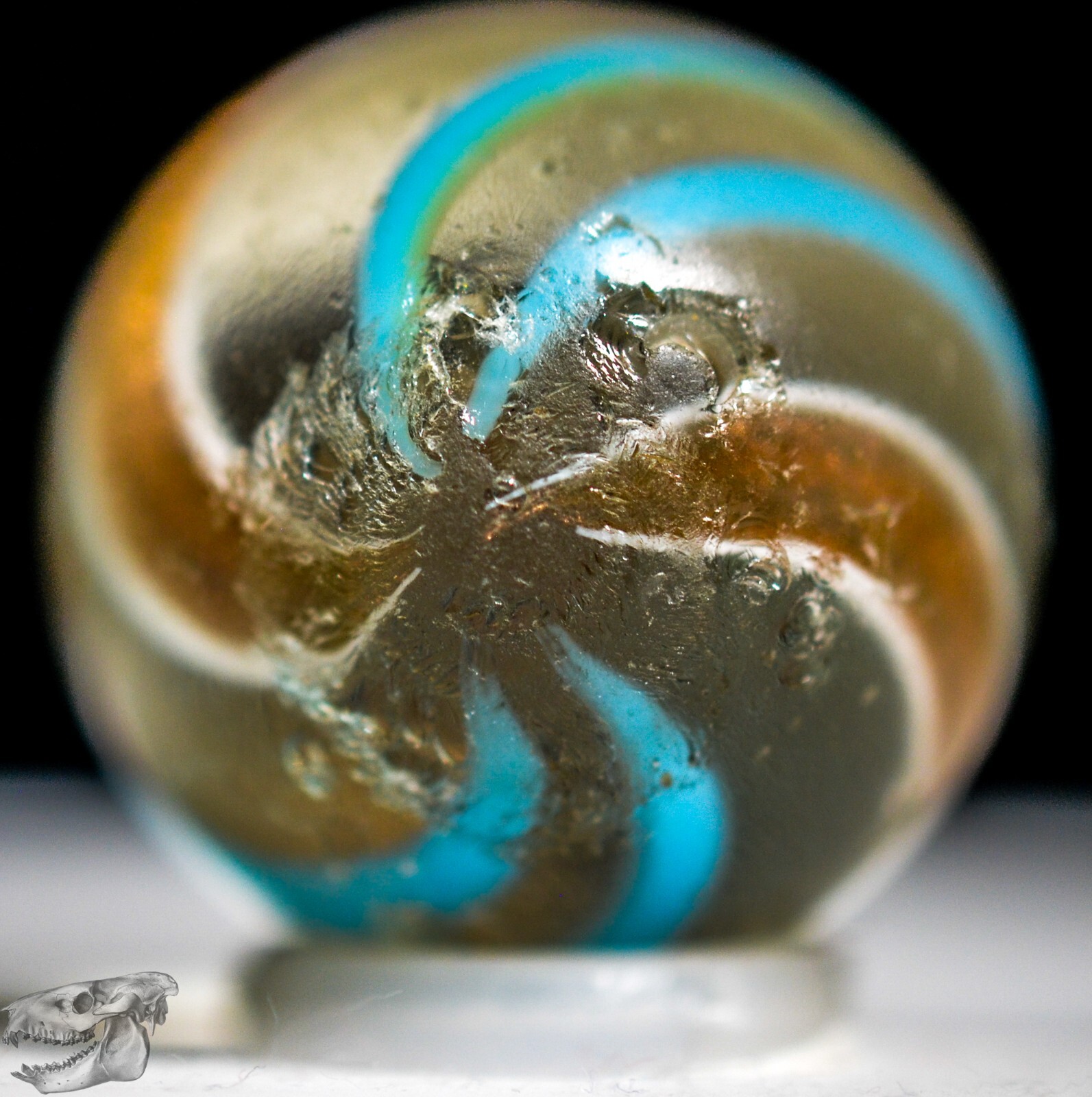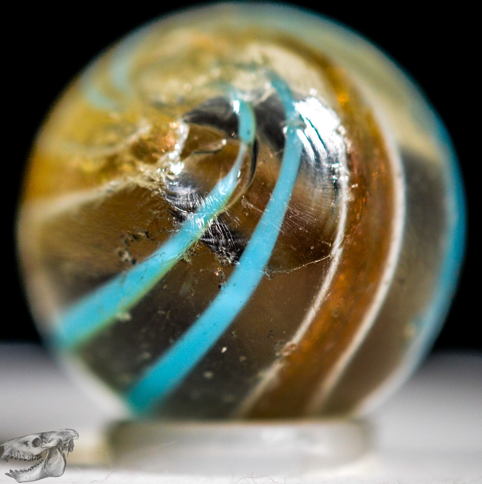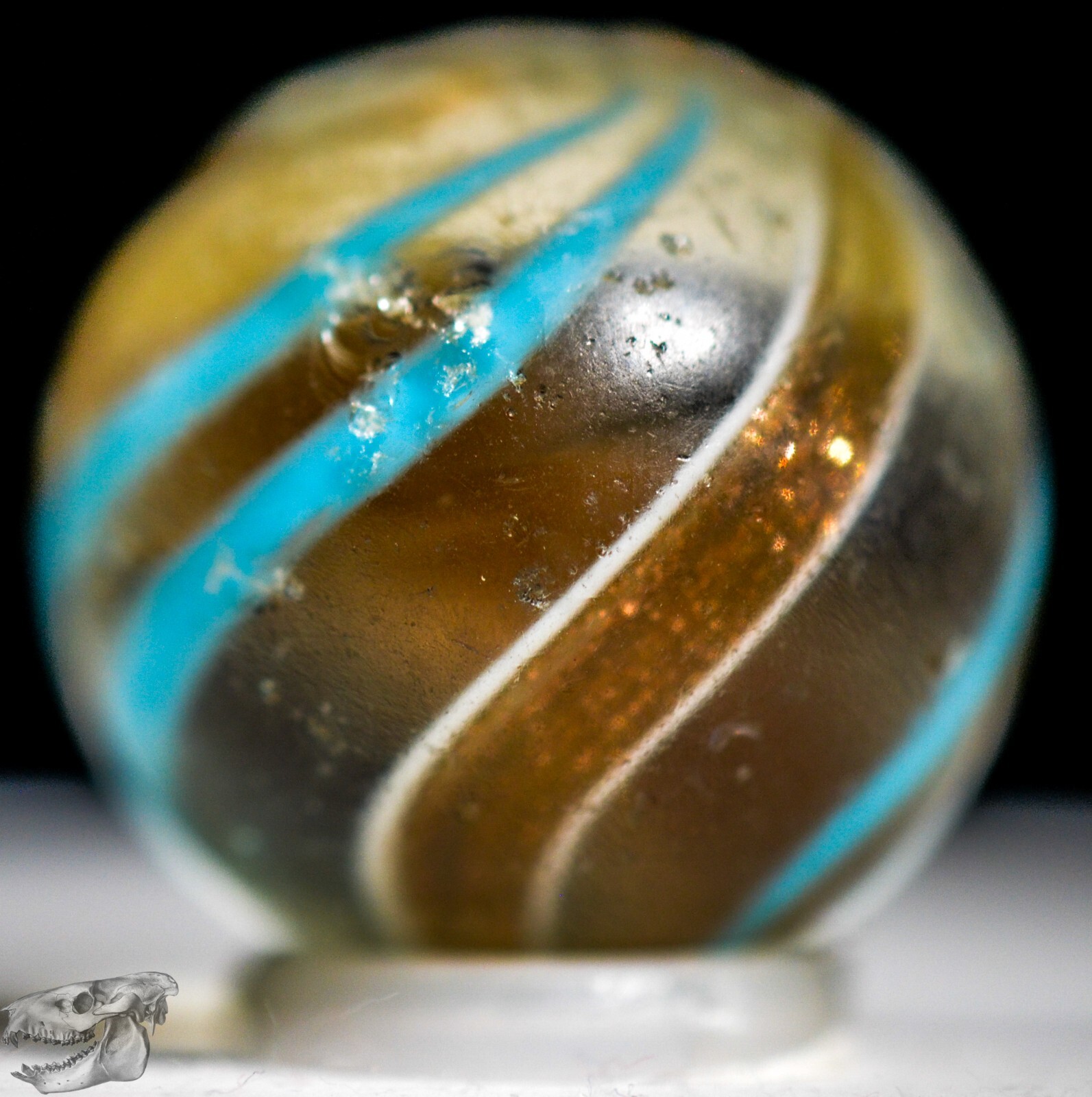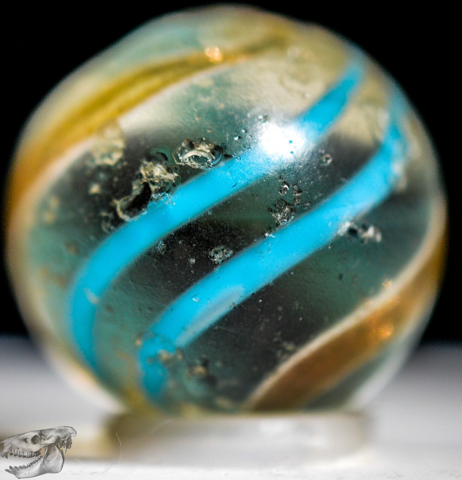 как выглядит Handmade Aqua Banded Lutz Marble, 25/32 in, Good , Chip, Germany 1860-1920 S1234 фото