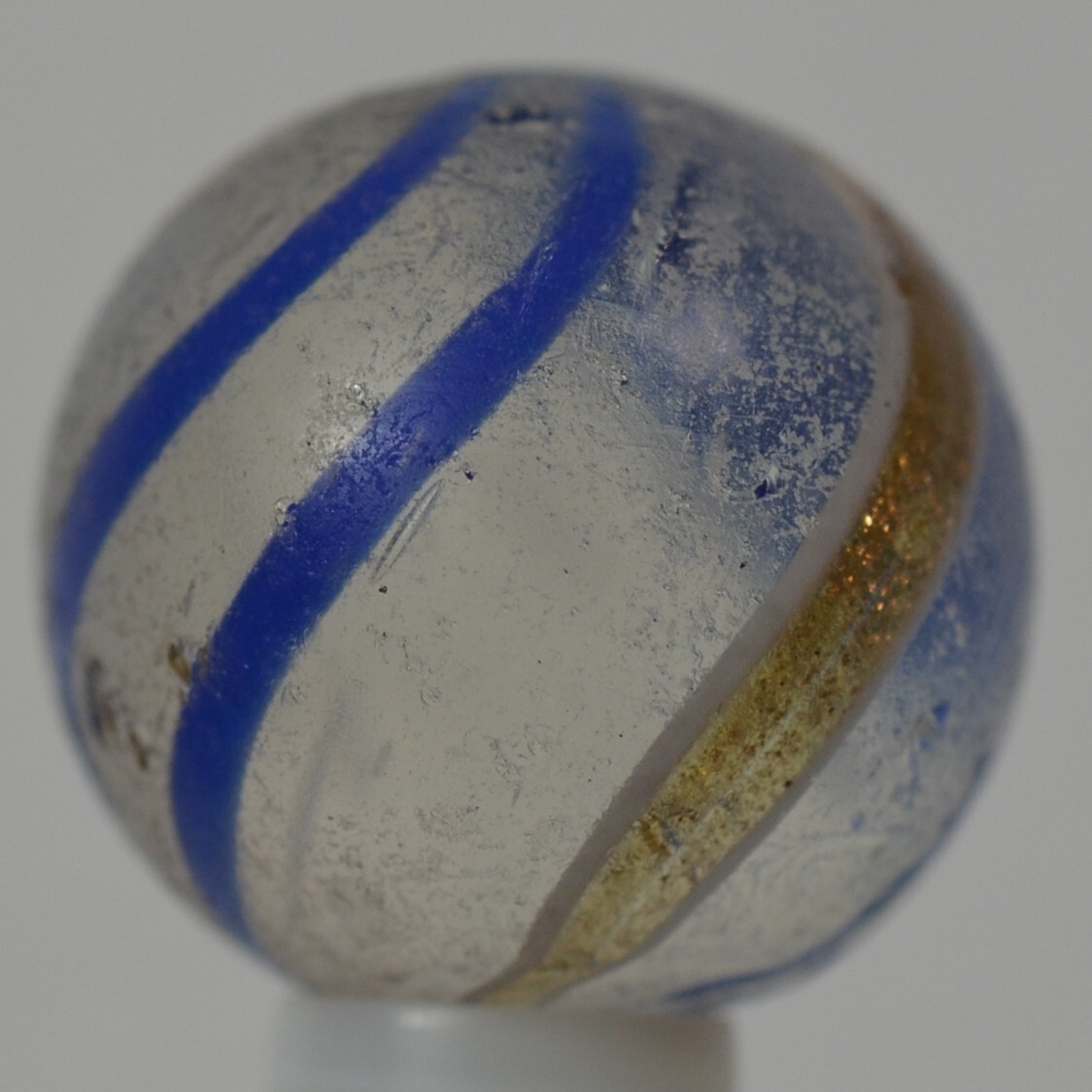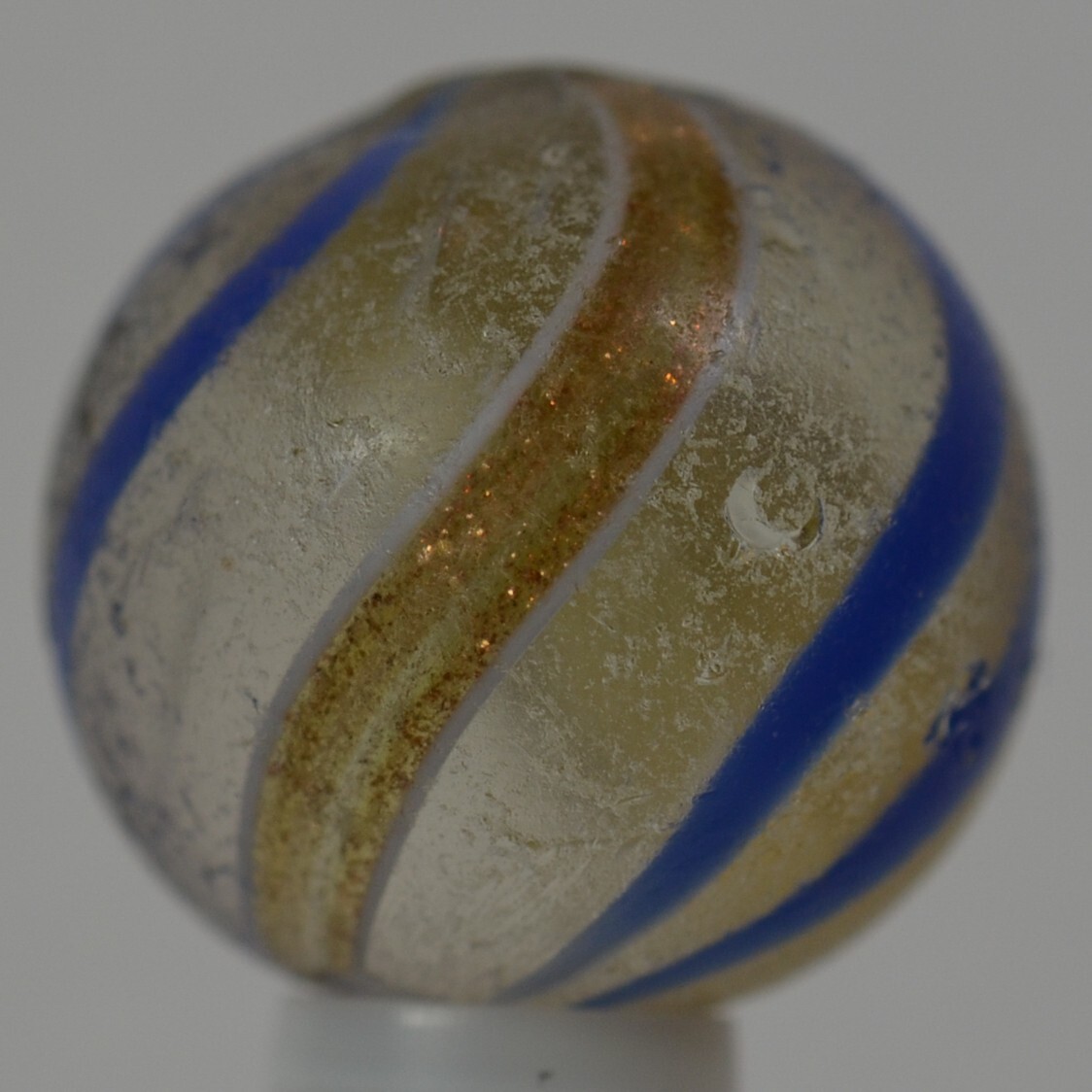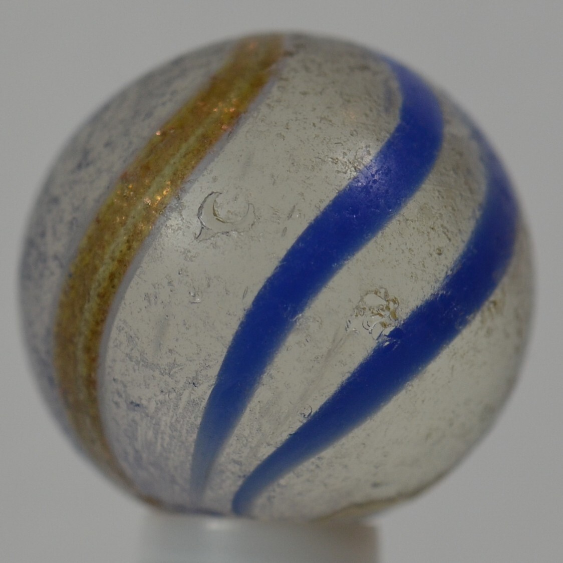 Handmade Blue Banded Lutz Marble, 11/16 in, Good , Germany, 1860-1920, S1220