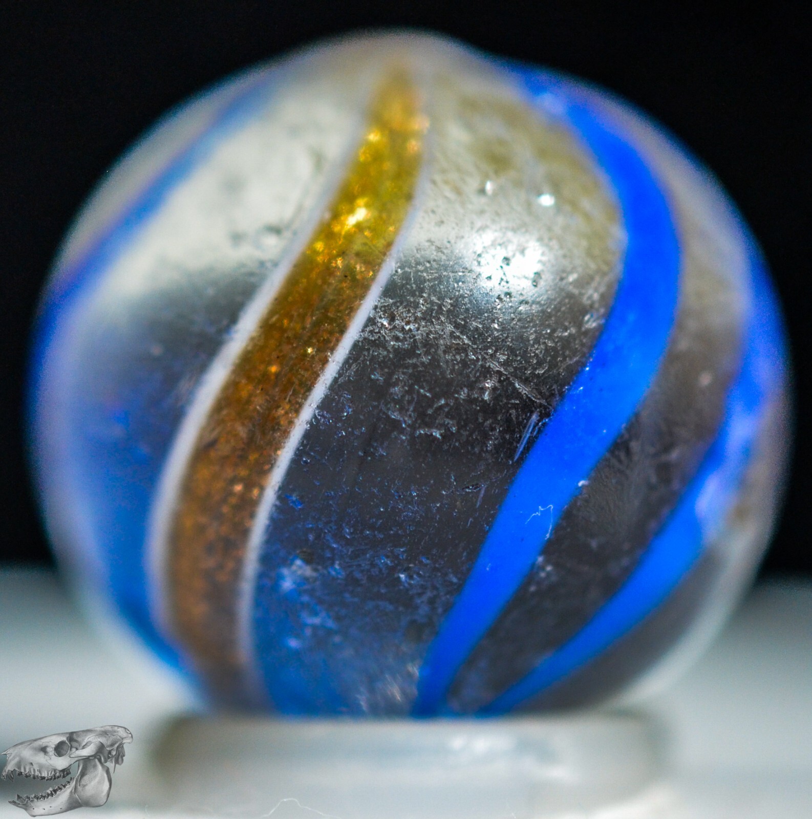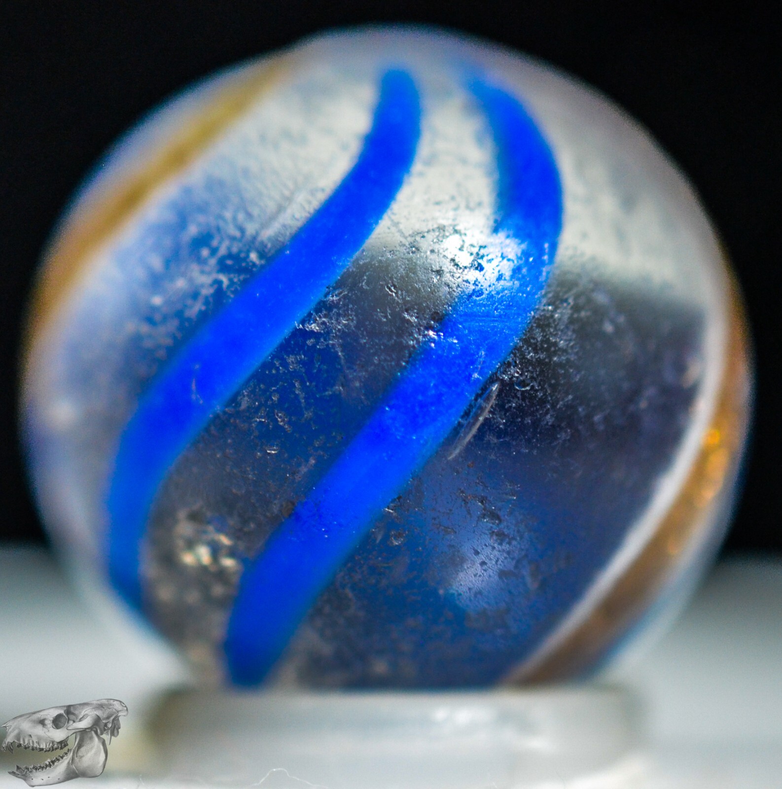 как выглядит Handmade Blue Banded Lutz Marble, 11/16 in, Good , Germany, 1860-1920, S1220 фото