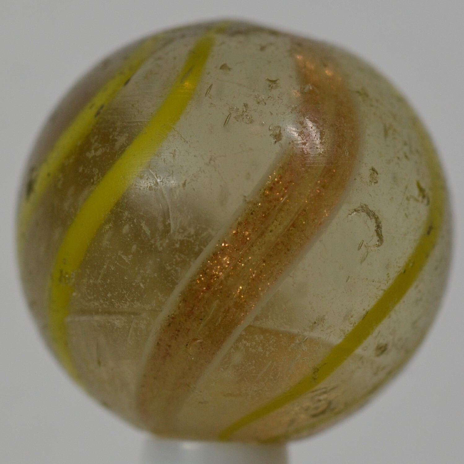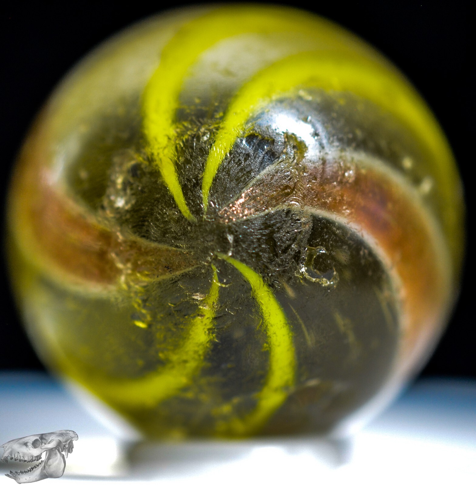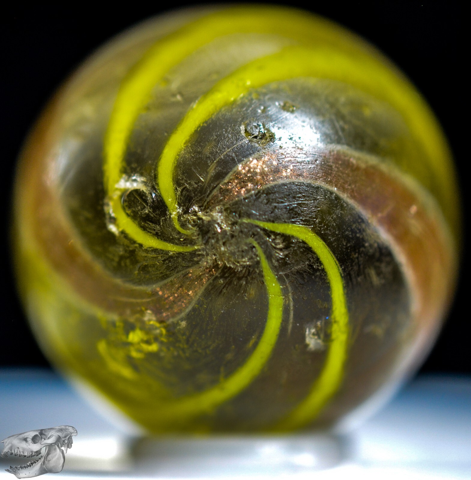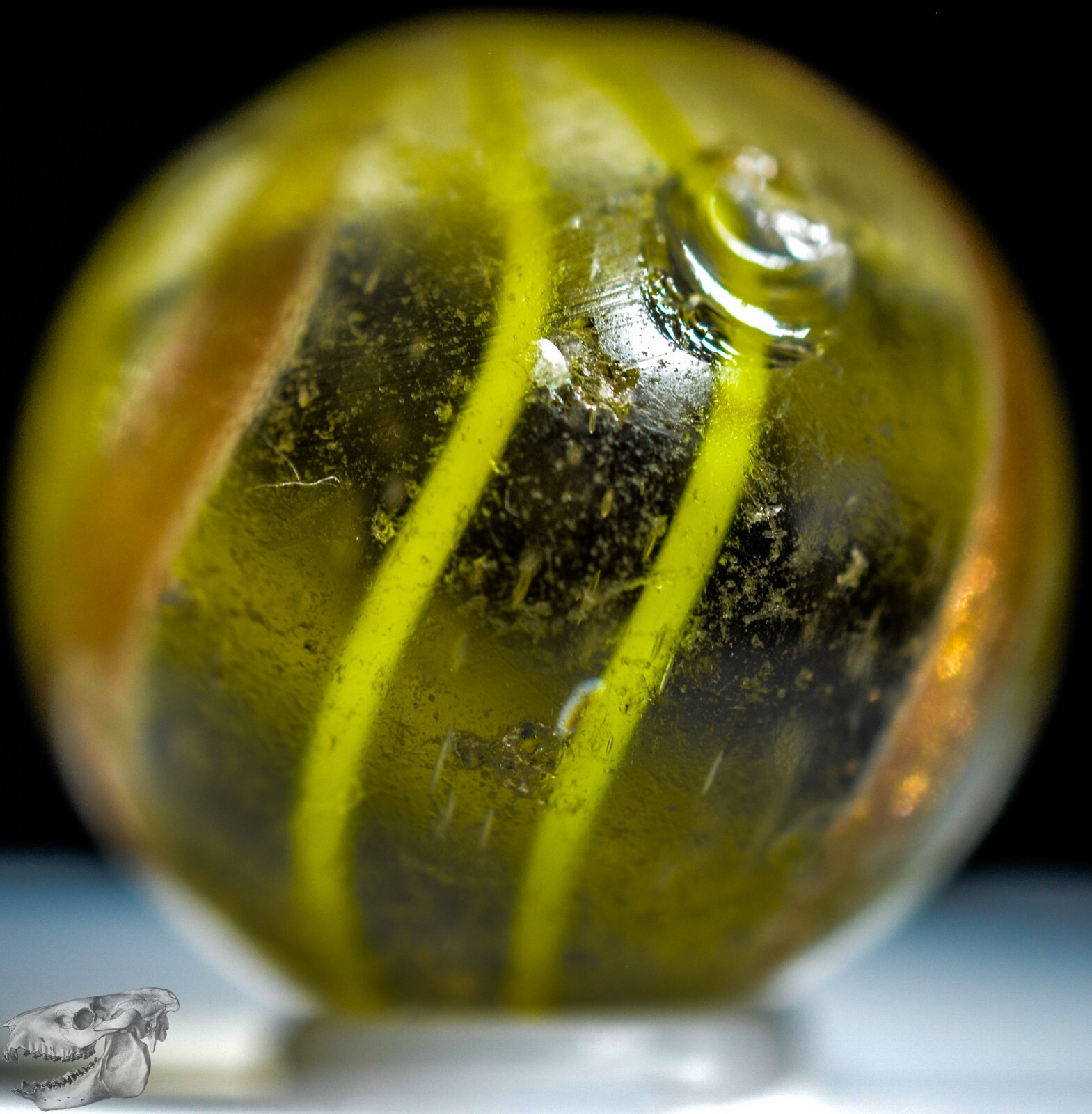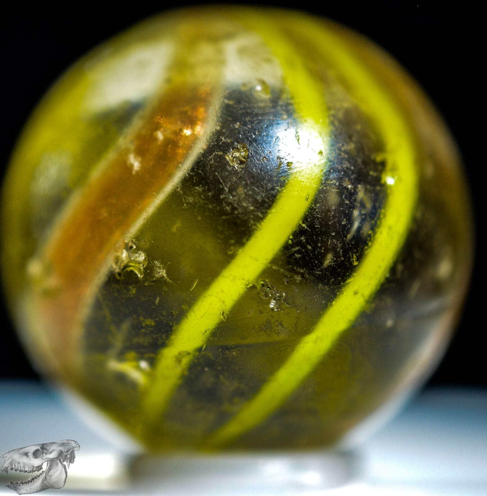 Handmade Yellow Banded Lutz Marble, Shooter 29/32 in, Near Mint-, Germany, S1262
