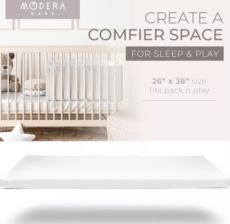 26x38x2 Modera Pack N Play Baby Mattress Topper Pad Washable Waterproof Cover