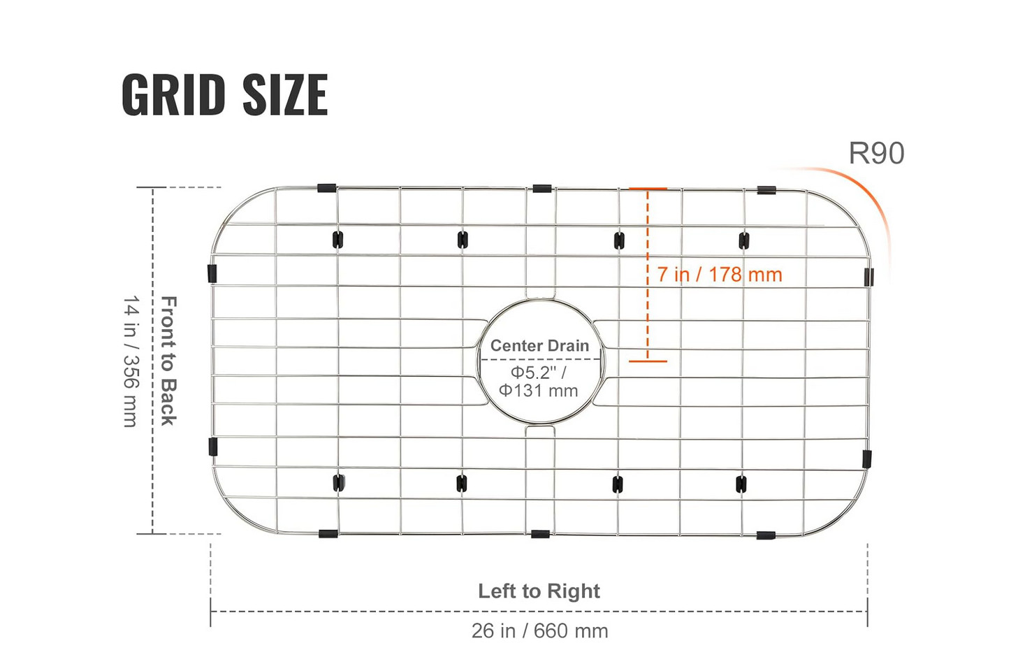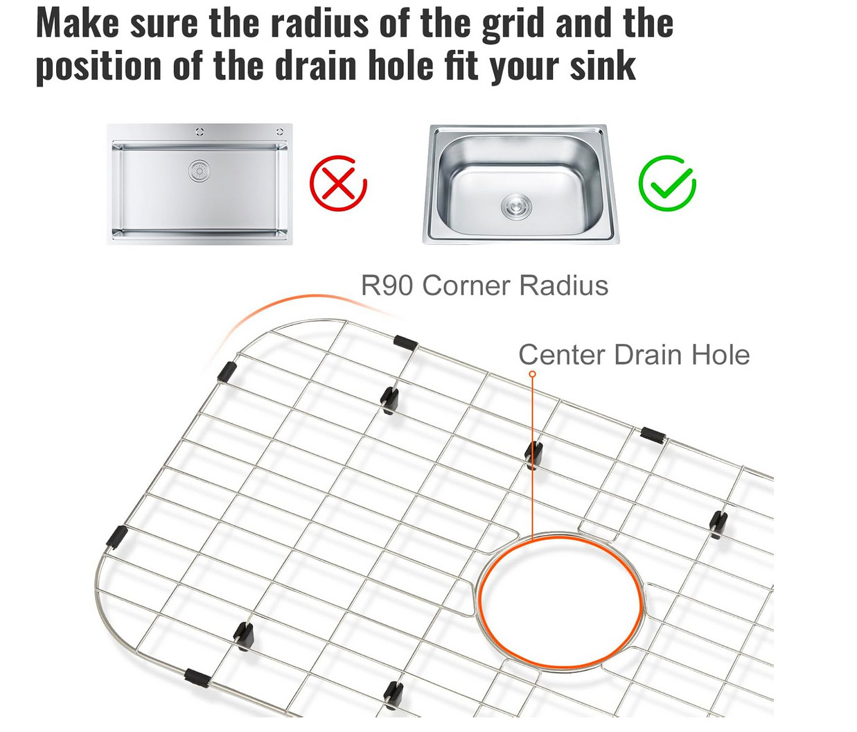 Kitchen Sink Bottom Grid Protector 26x14 VEVOR KM-BHQ-2302-SKU3 Center Drain