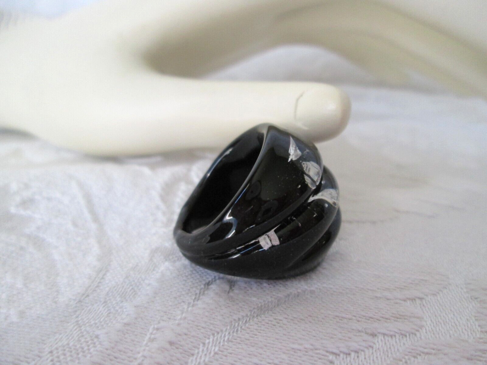 как выглядит Hand Crafted Murano Glass Dome Ring with Silver Foil - 7.25 фото