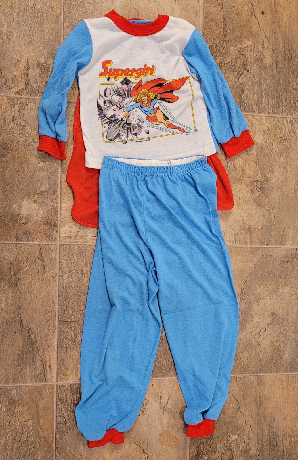 Rare Vintage Super Girl Pajamas Bates-Jama WITH CAPE 1984 Size 6 Supergirl