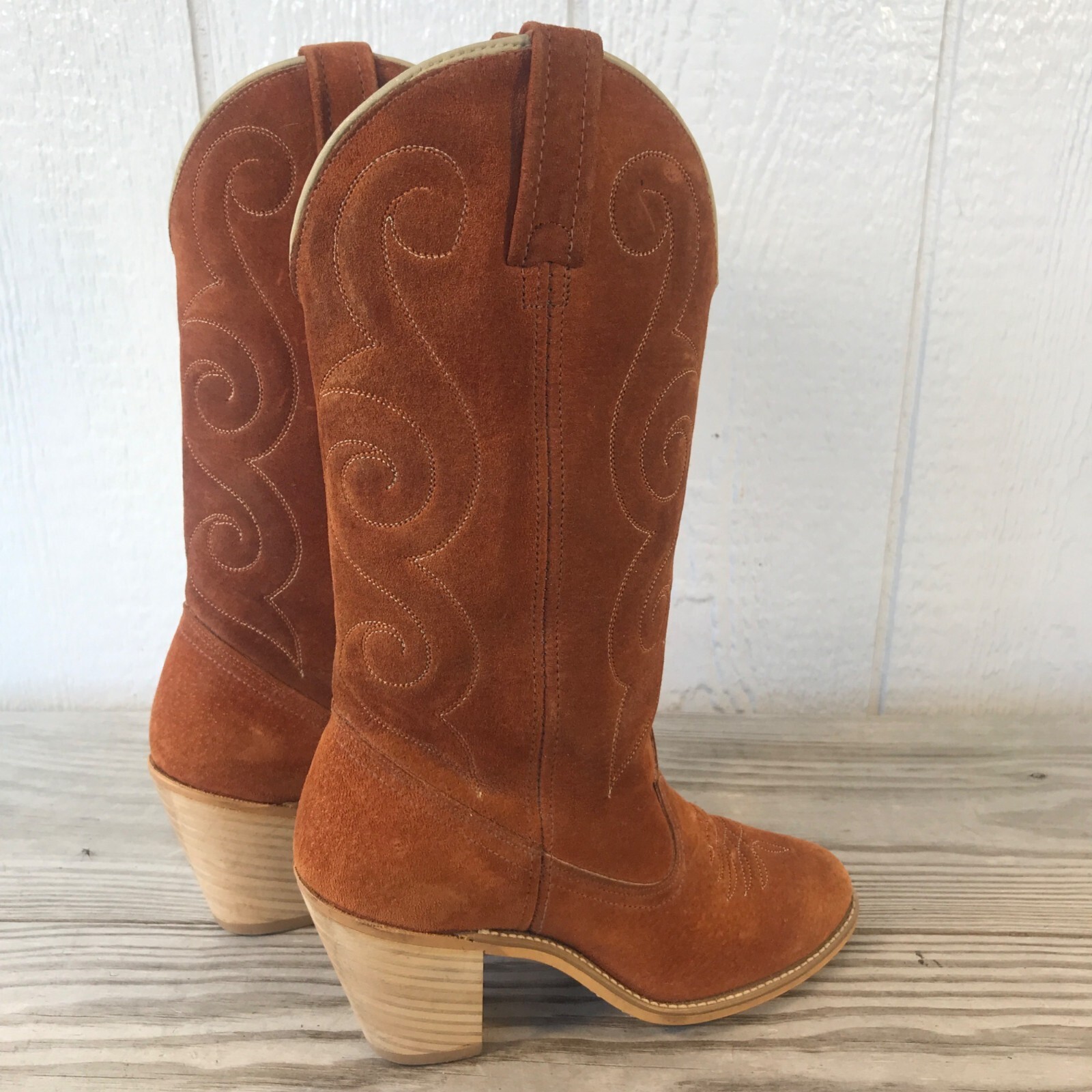 Vintage Acme Womens Stacked Suede Hazelnut Brown Western Boots 6 M 583 USA
