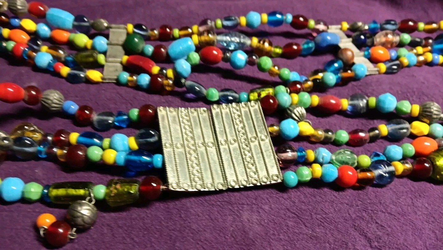 как выглядит Vintage Belly Dancing Multi-Color Glass Beads on a silver tone metal linked belt фото
