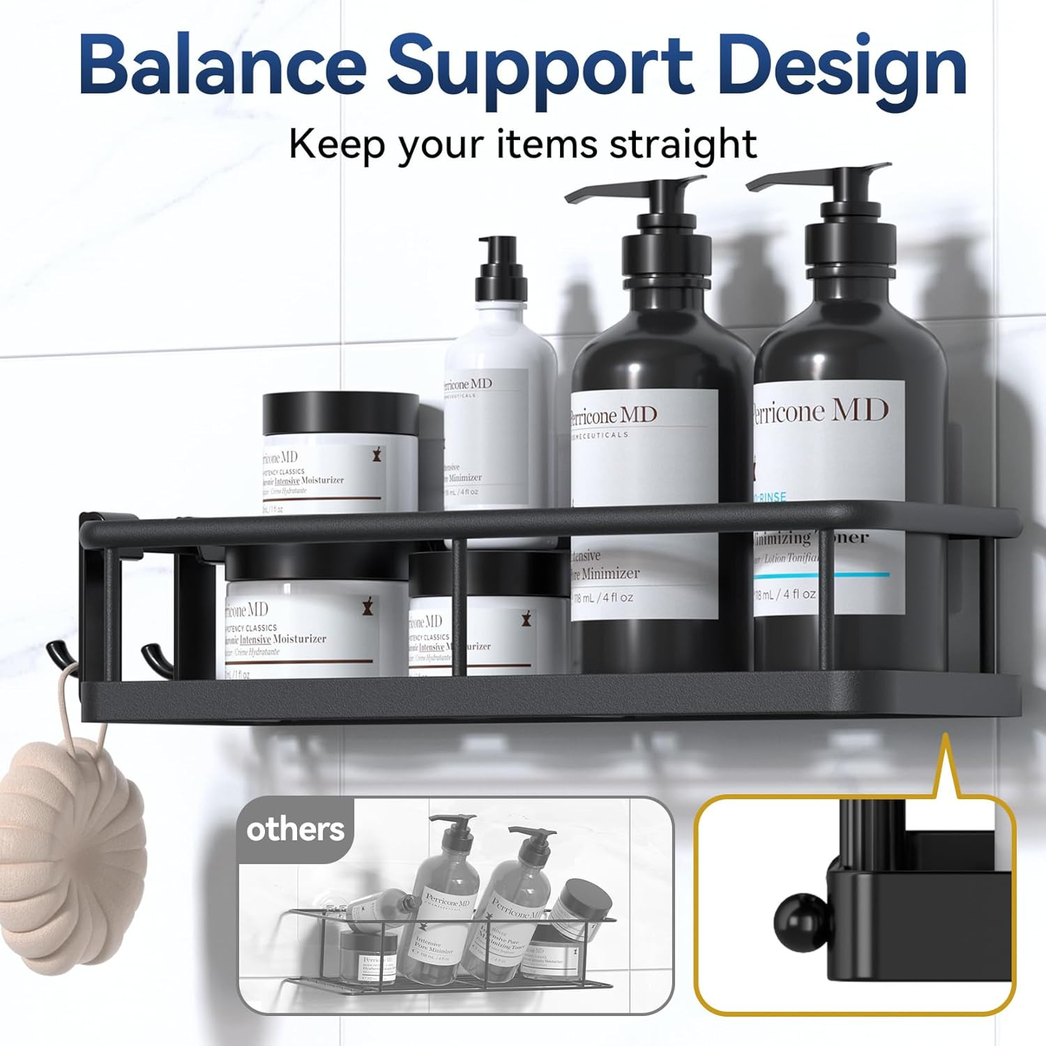 Shower Caddy Adhesive, No Drill Bathroom Shower Organizers, with Removable Hooks