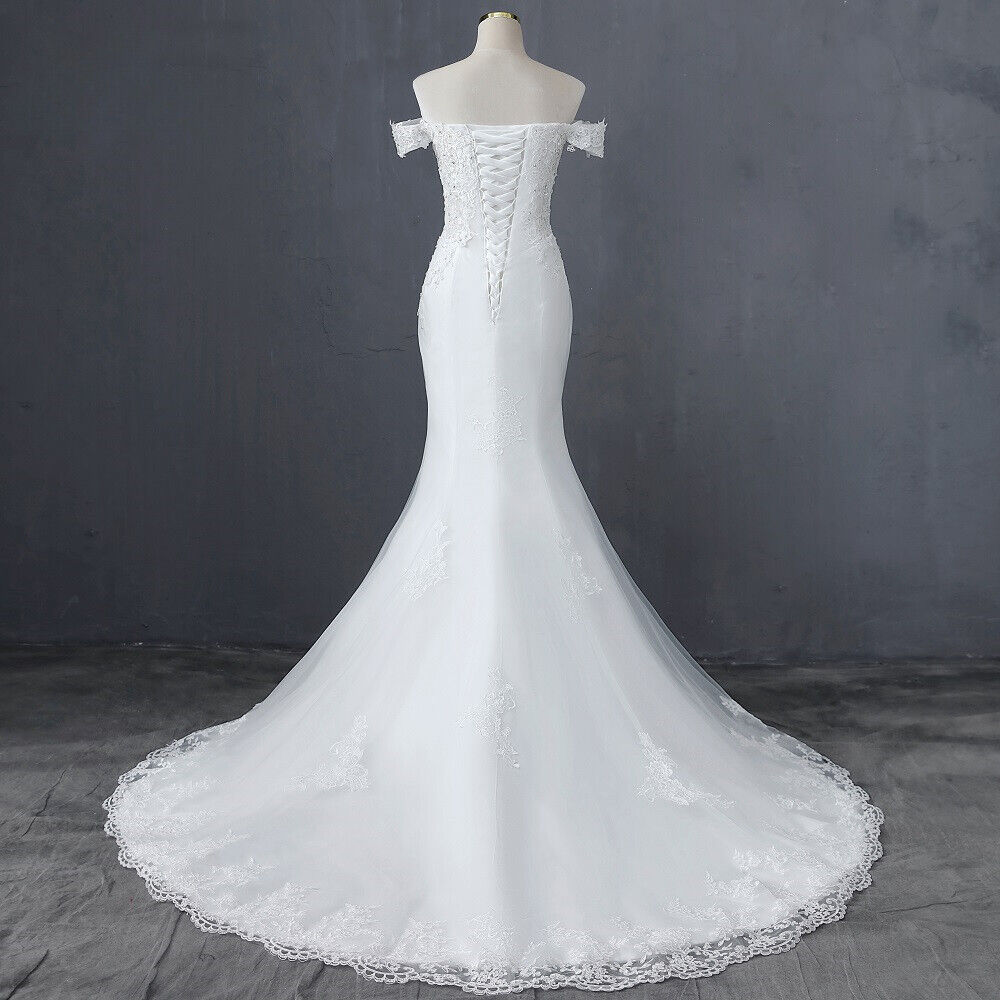 как выглядит Luxury Mermaid Wedding Dress Off Shoulder Cap Sleeves Lace Applique Bridal Gowns фото