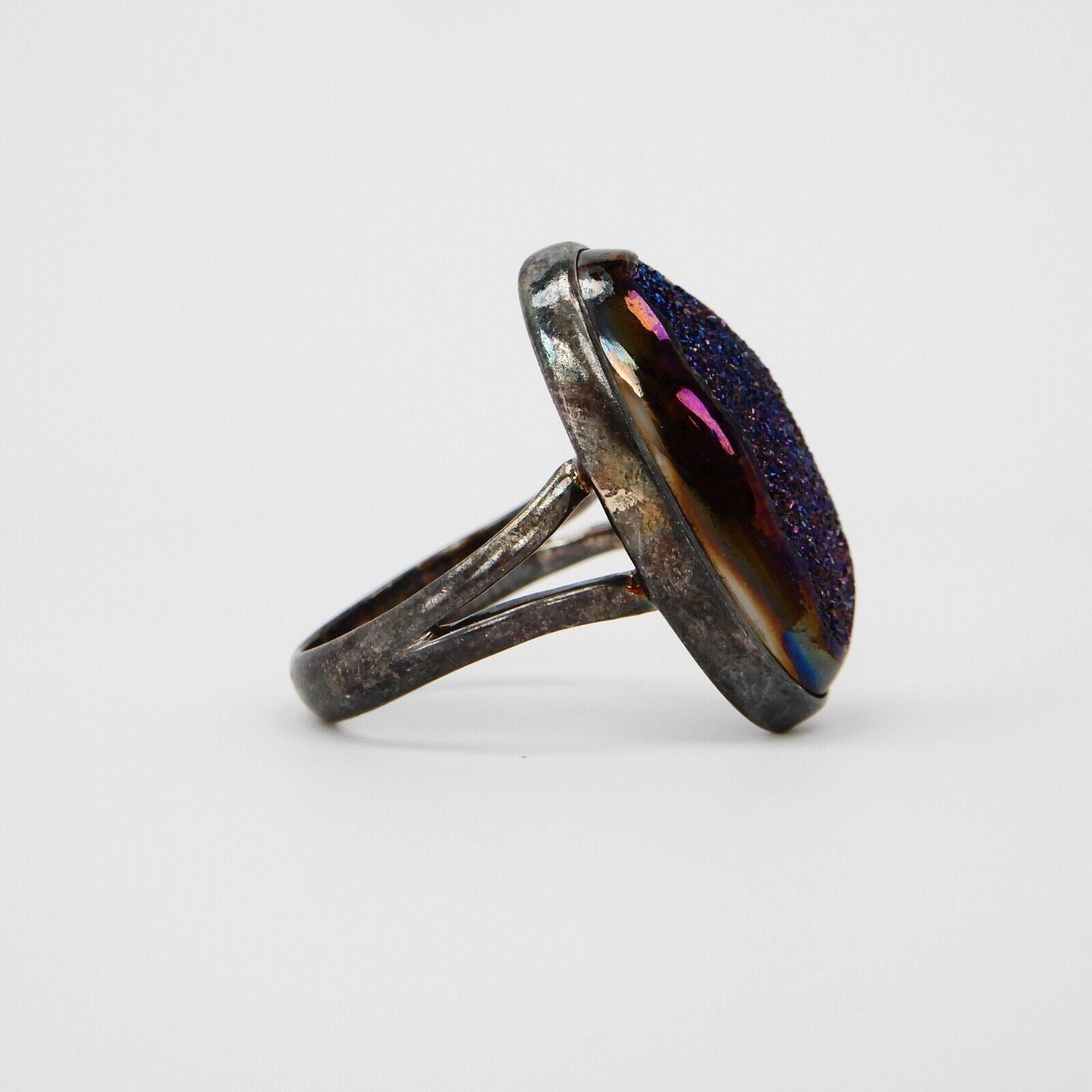 Vintage Sterling Silver 925 Blue Druzy Ring Size 7.5, Oxidized