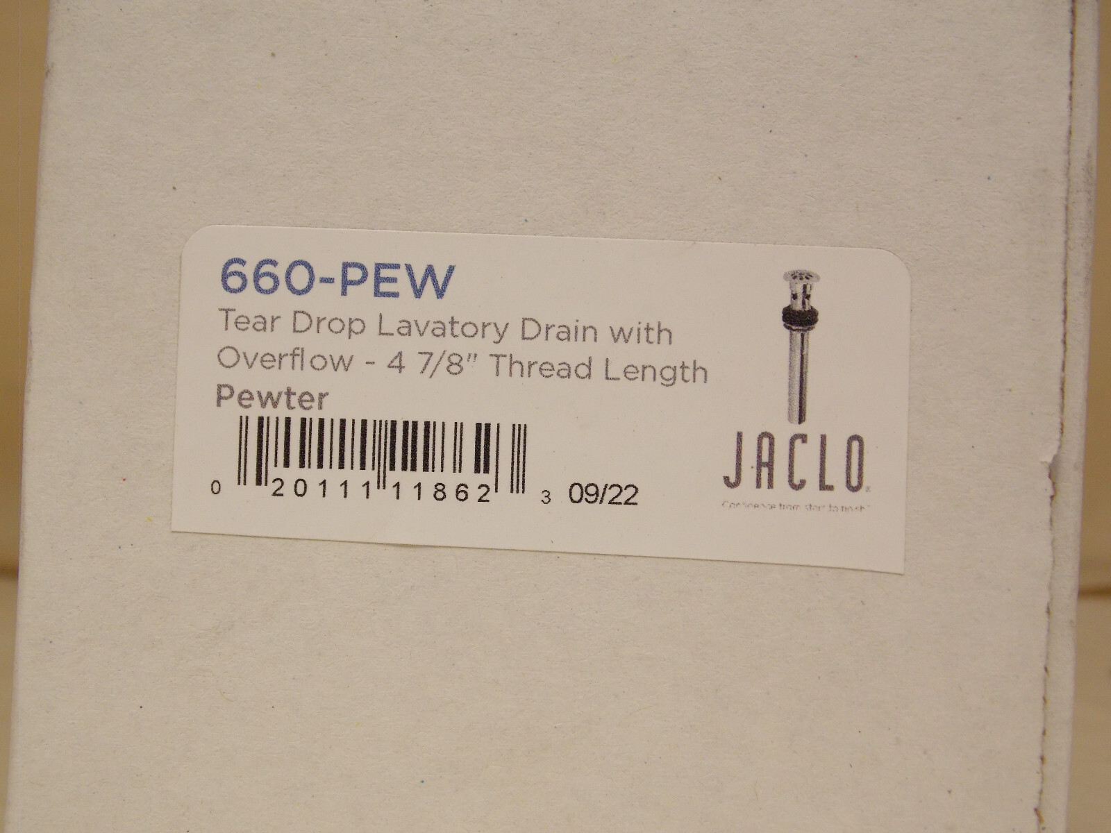 Jaclo 660-PEW Tear Drop Bathroom Sink Drain w Overflow 4-7/8 Threaded, Pewter