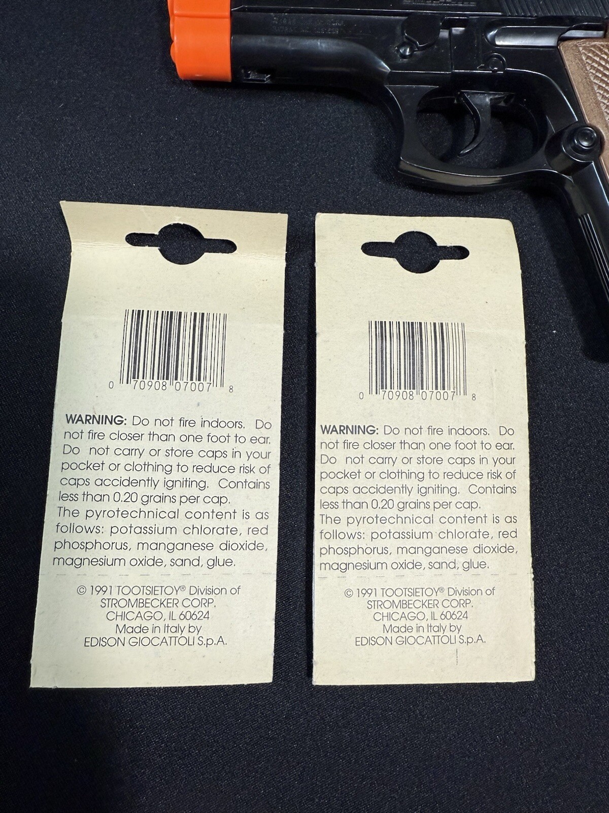 1985 Larami Corp Toy Gun Pistol 1031539 2 New Tootsie Supermatic strip cap gun
