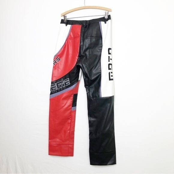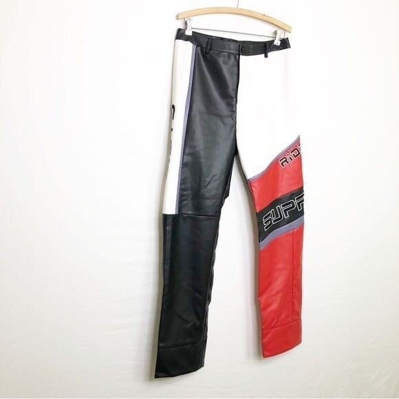 Fashion Nova faux, leather color block let s race Moto pants