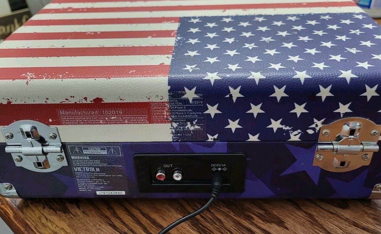 Victrola American Flag 3 Speed Suitcase Vinyl Record Turntable Player VSC-550BT