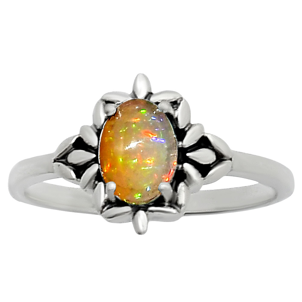 925 Sterling Silver Flower Ring with Gemstone - Vintage Boho Jewelry AGR1013