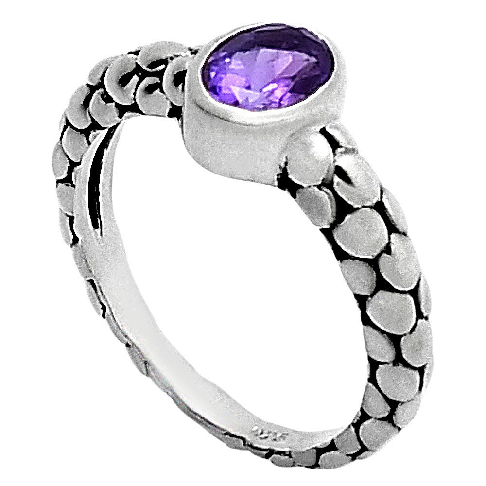 925 Sterling Silver Oval Gemstone Beaded Band Ring Jewelry for Women AGR1023