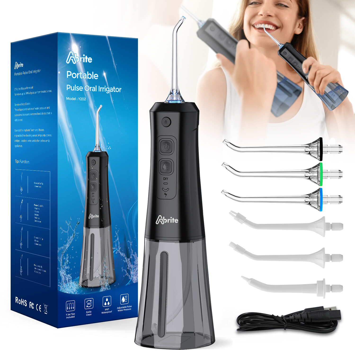 Abrite Cordless OLED Oral Irrigator Dental Water Flosser 7 Jet Tips 5 Model