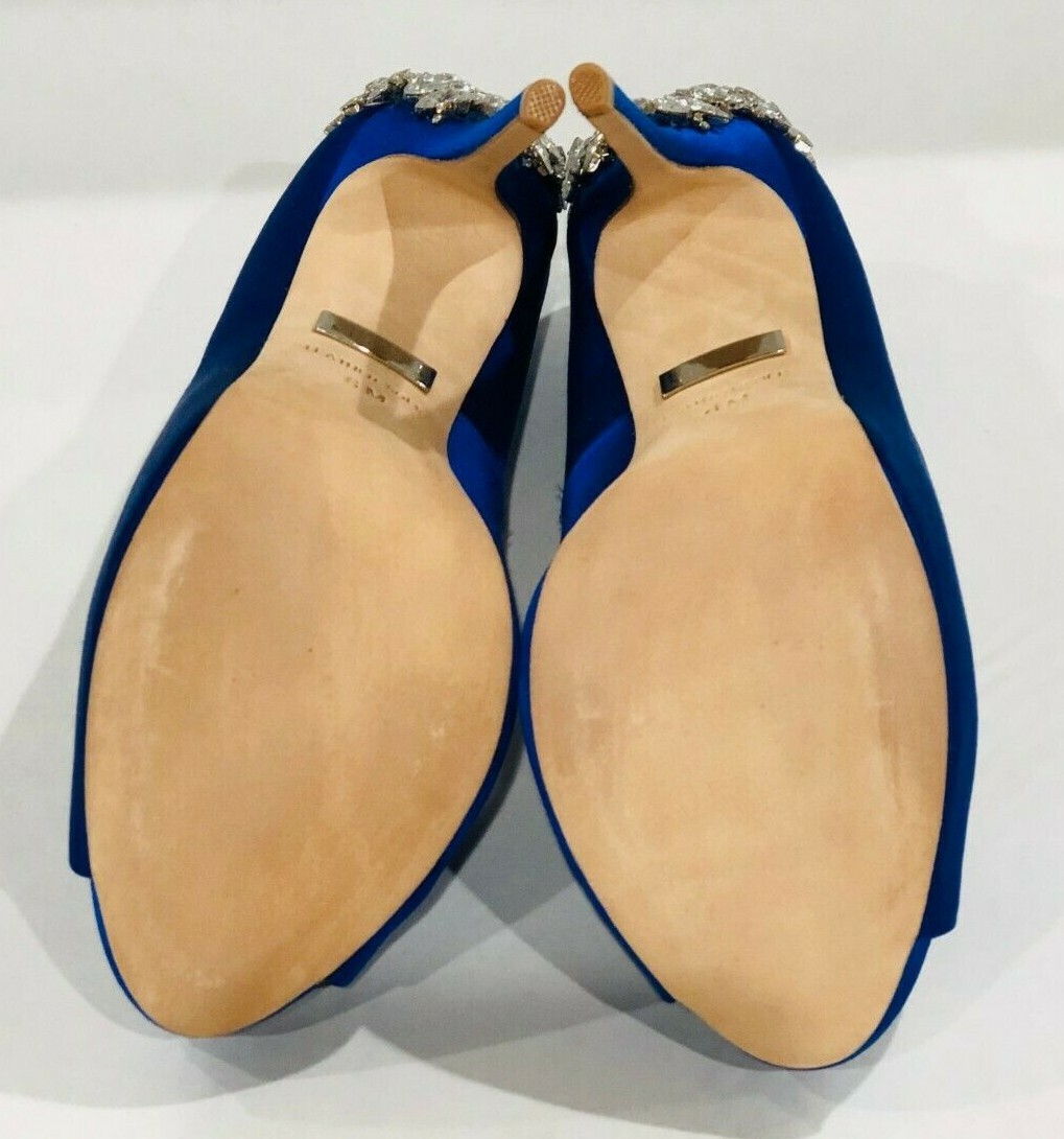 Badgley Mischka Kiara Pumps, Peep Toe, Sapphire Satin, Size 6, Women's