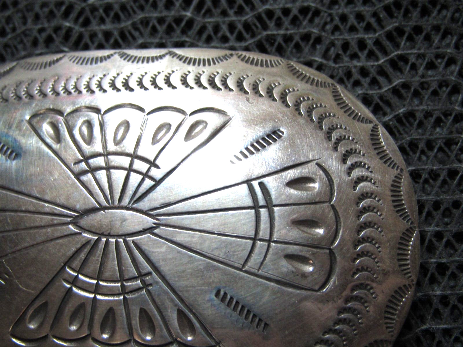 как выглядит NAVAJO STERLING SILVER CONCHO HIPPIE BELT BUCKLE VINTAGE RARE RY 26g фото