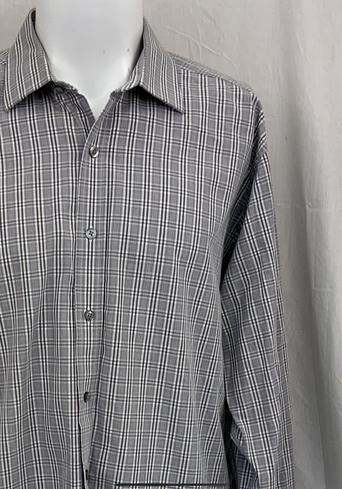 как выглядит Michael Kors Dress Shirt 16.5 32/33 Gray Plaid 100 Cotton YGI Y1-324 фото