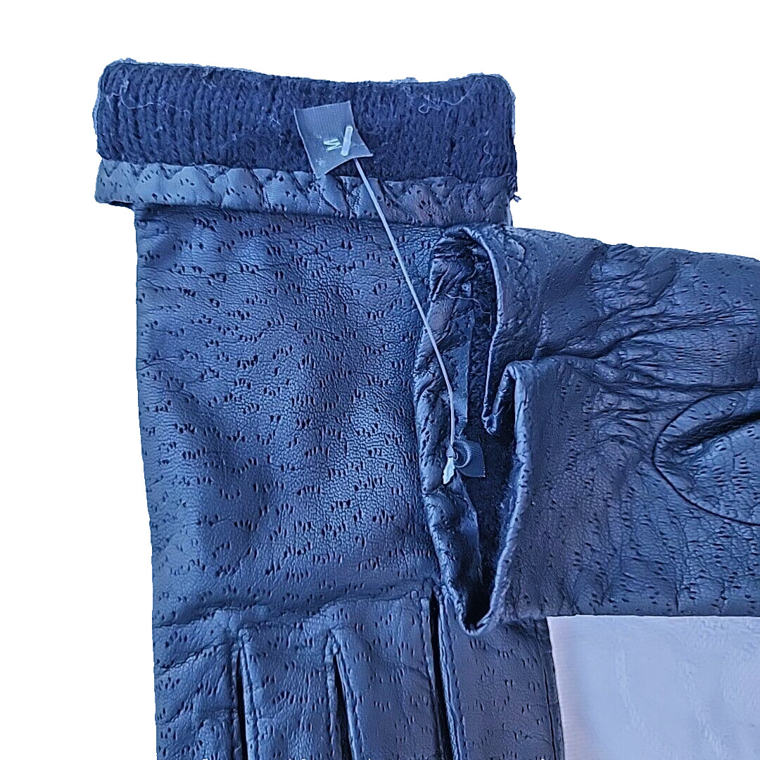 Ladies Soft Textured Genuine Wool Lined Black Leather Gloves Size Medium - EUC