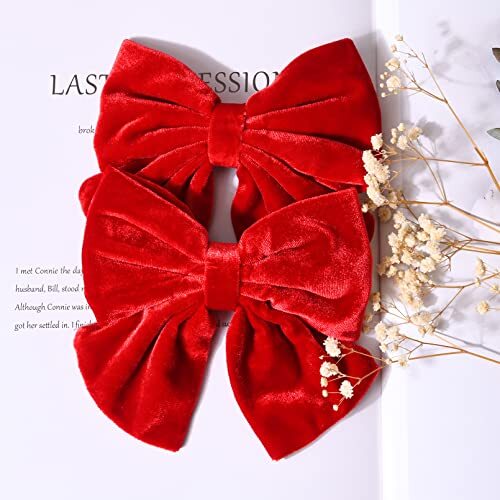 Velvet Hair Bows Girls 6 2PCS Big Red Fall bow Alligator Clips for 2-Red