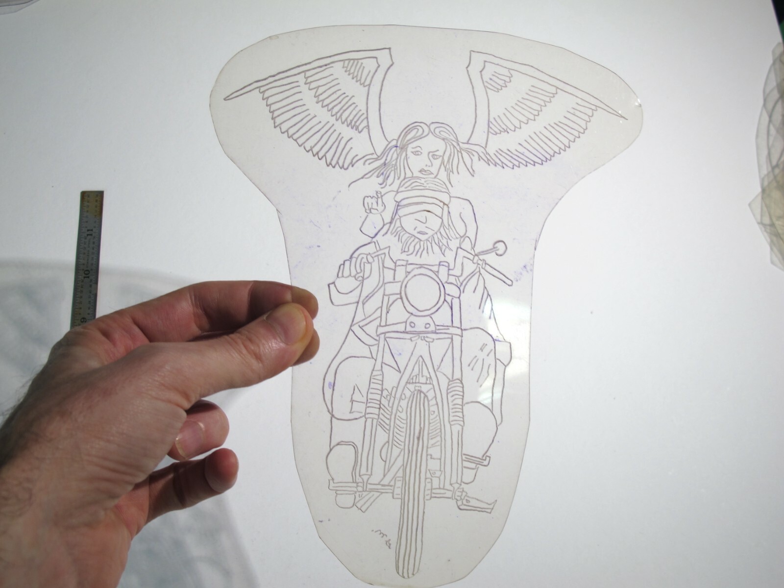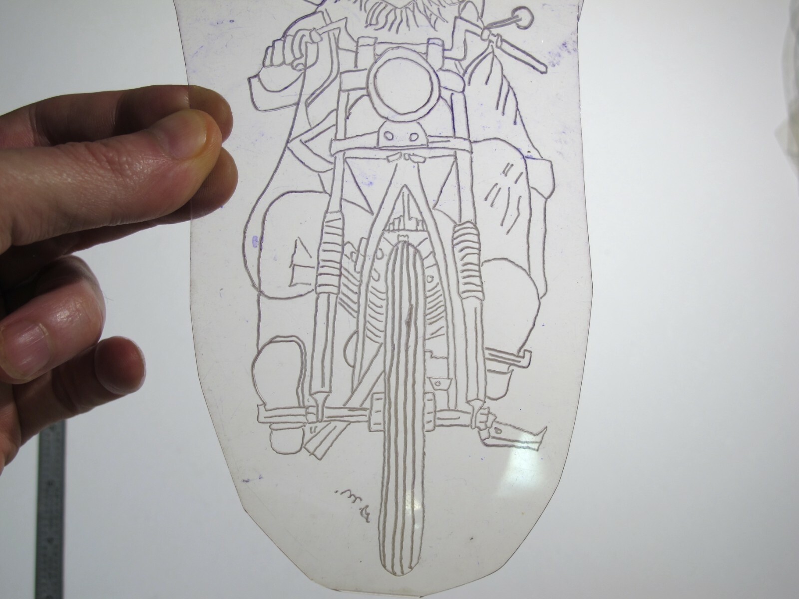 • vtg 1960s 1970s Tattoo acetate stencil Blindfold Biker Guardian Angel LG signed
